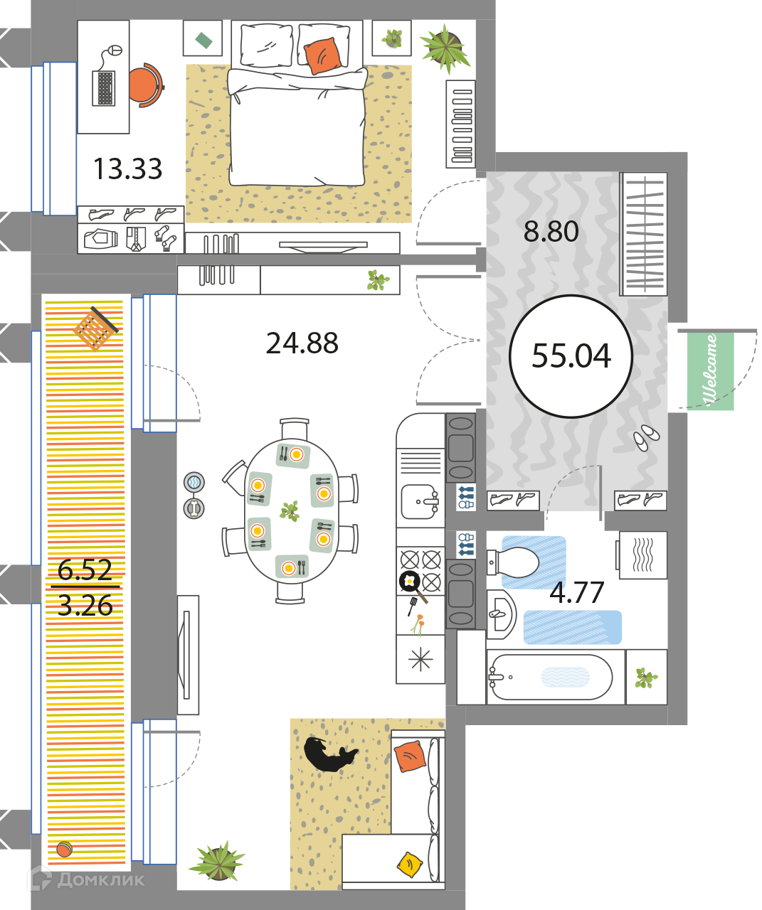 Общая площадь 55.04 м2