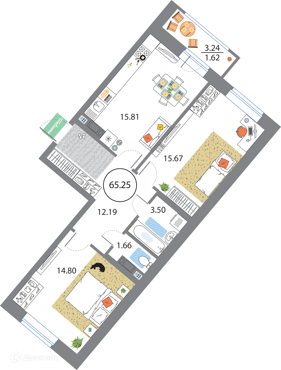 Общая площадь 65.25 м2