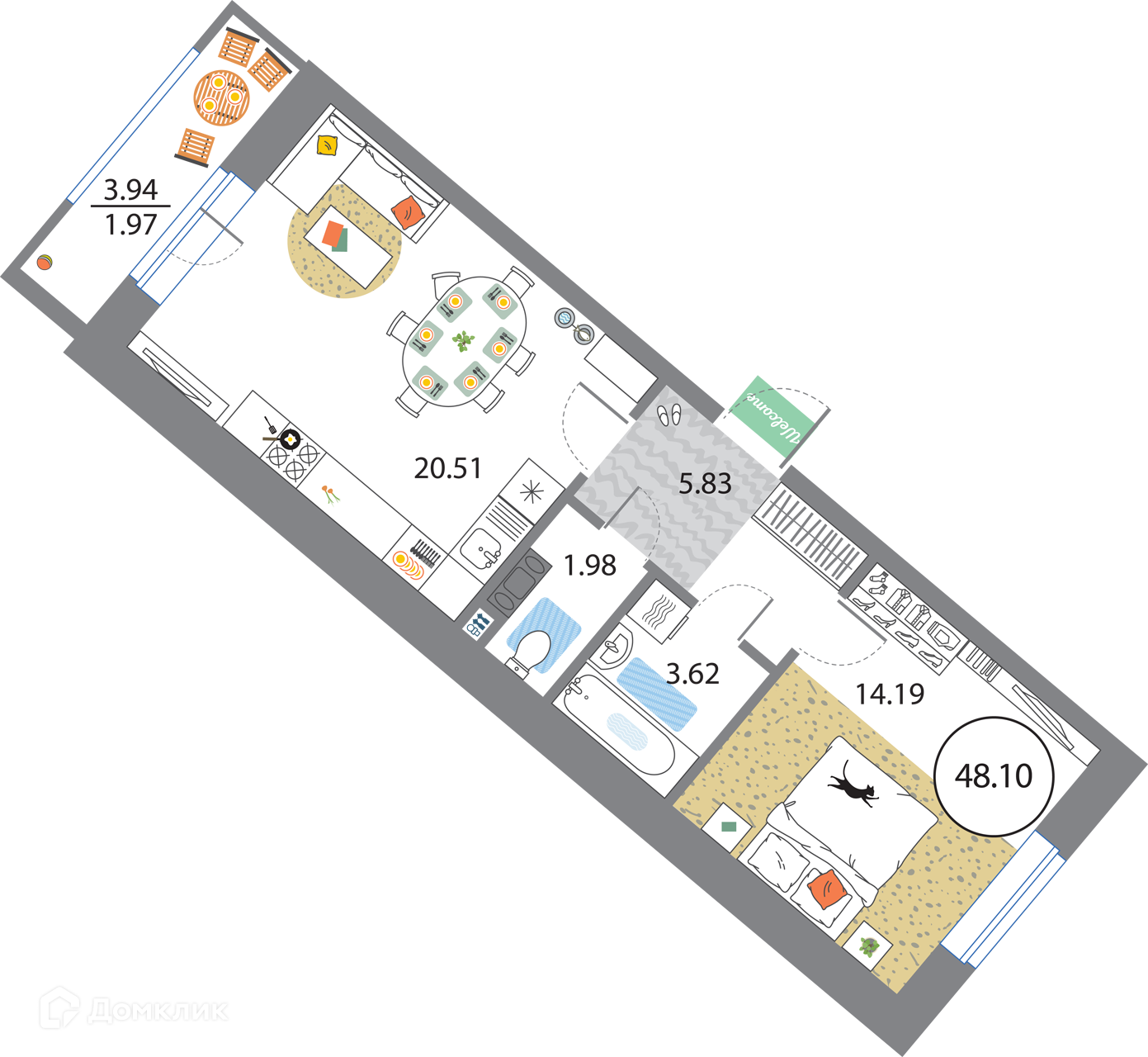Общая площадь 48.1 м2