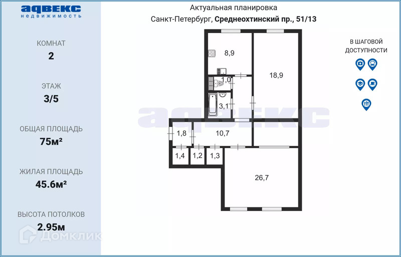 Общая площадь 75 м2