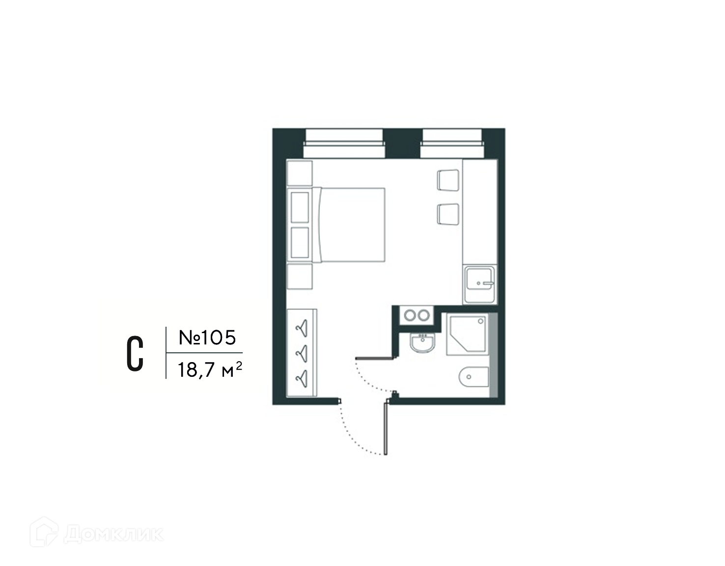 Общая площадь 18.7 м2