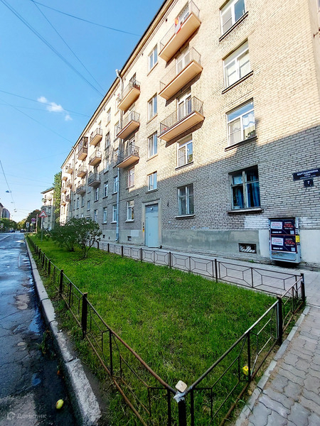 Двусторонняя: окна комнаты с балконом и кухни выходят на тихую ул. Карташихина, окно второй комнаты в большой зеленый двор-сквер с высокими деревьями и ухоженными газонами.