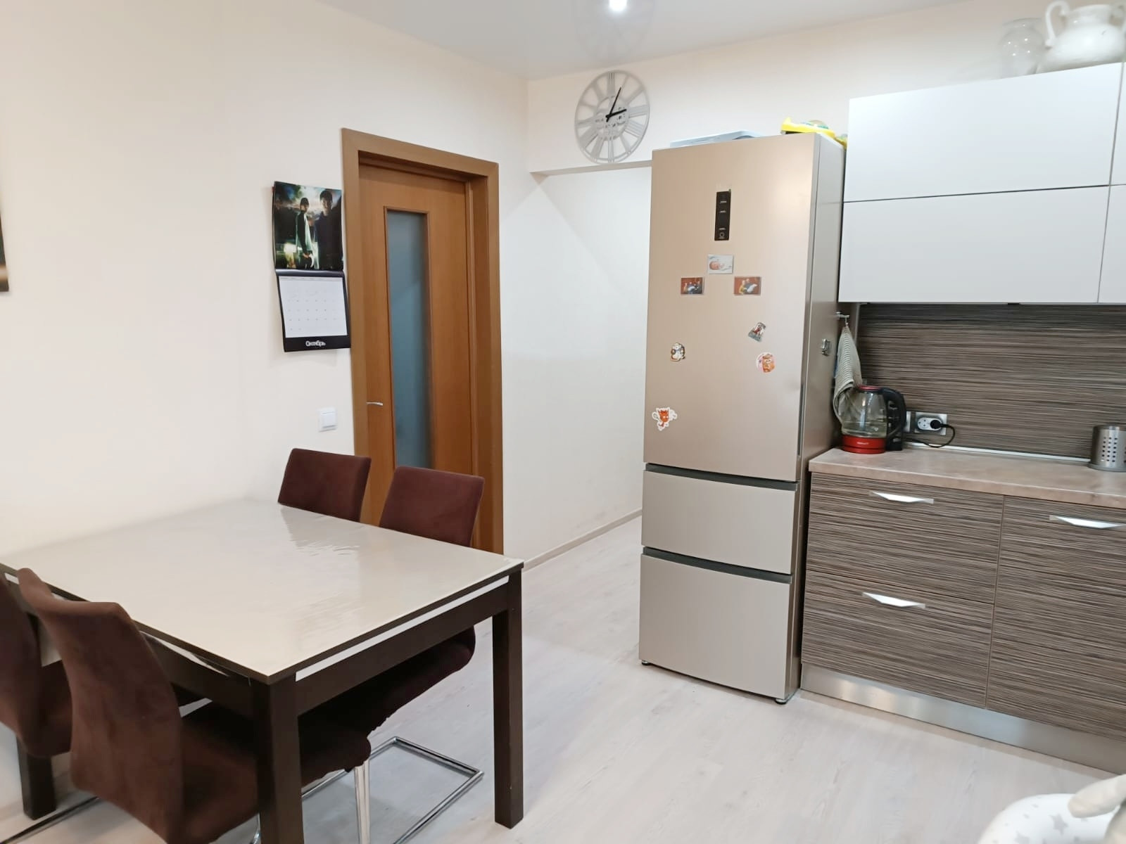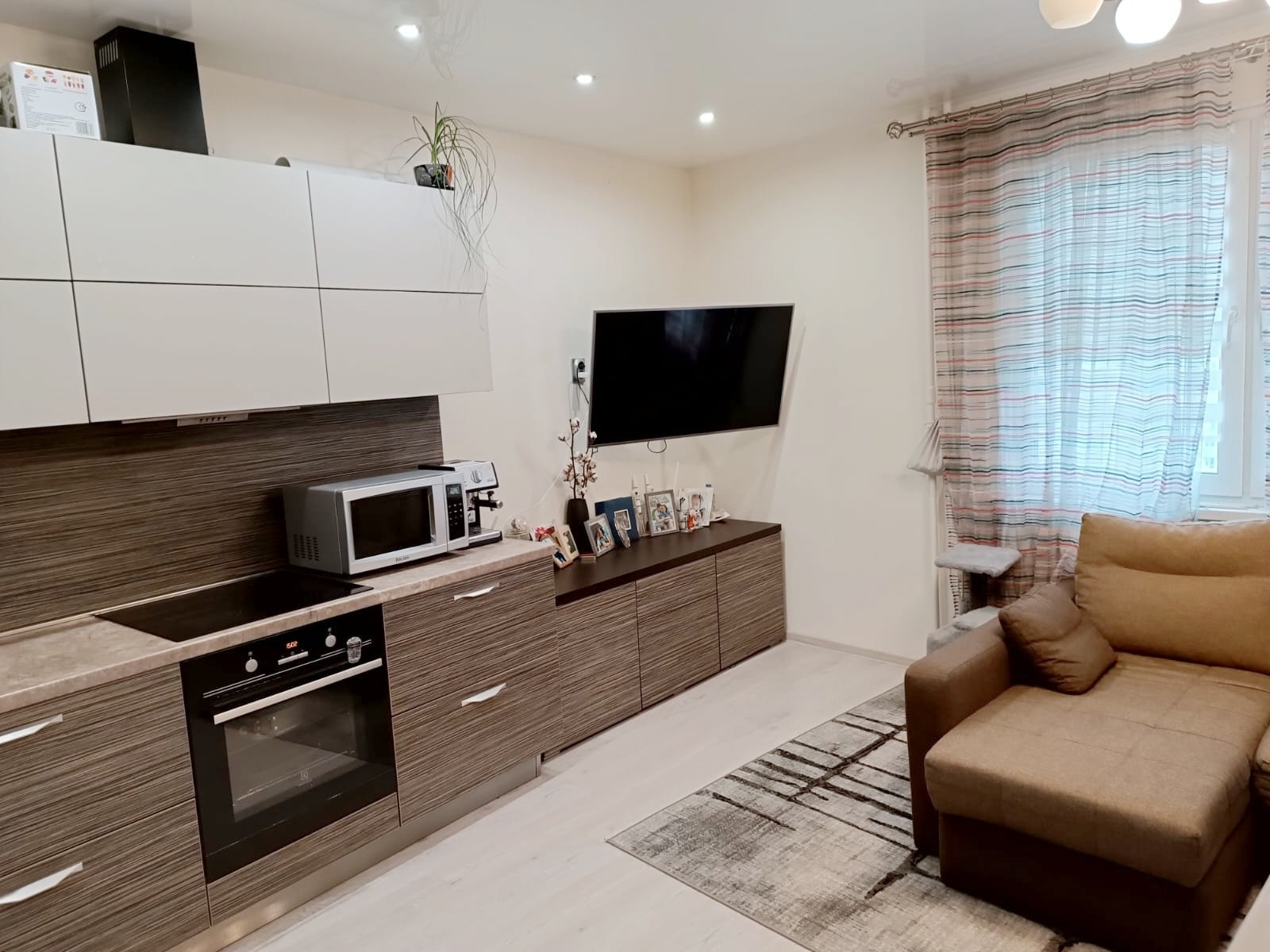 + Остаётся встроенная кухня с хорошей брендовой техникой, варочной панелью, духовым шкафом, холодильником, посудомоечной машиной и вытяжкой( по согласованию);