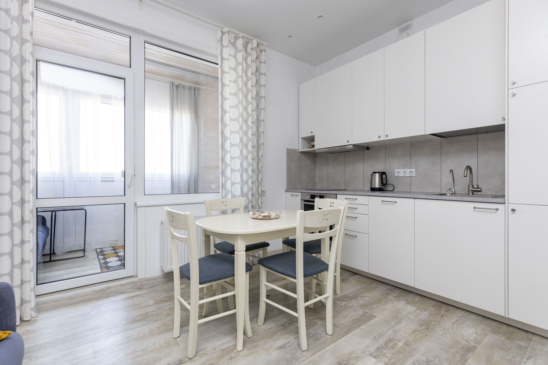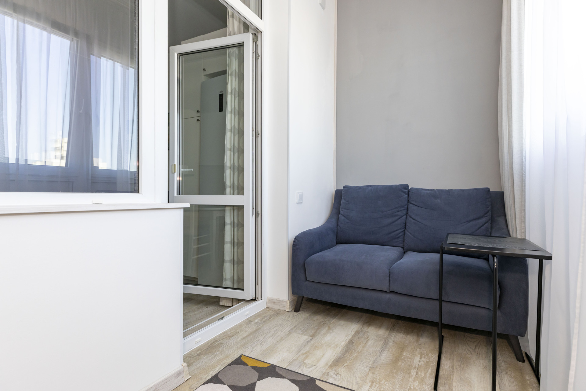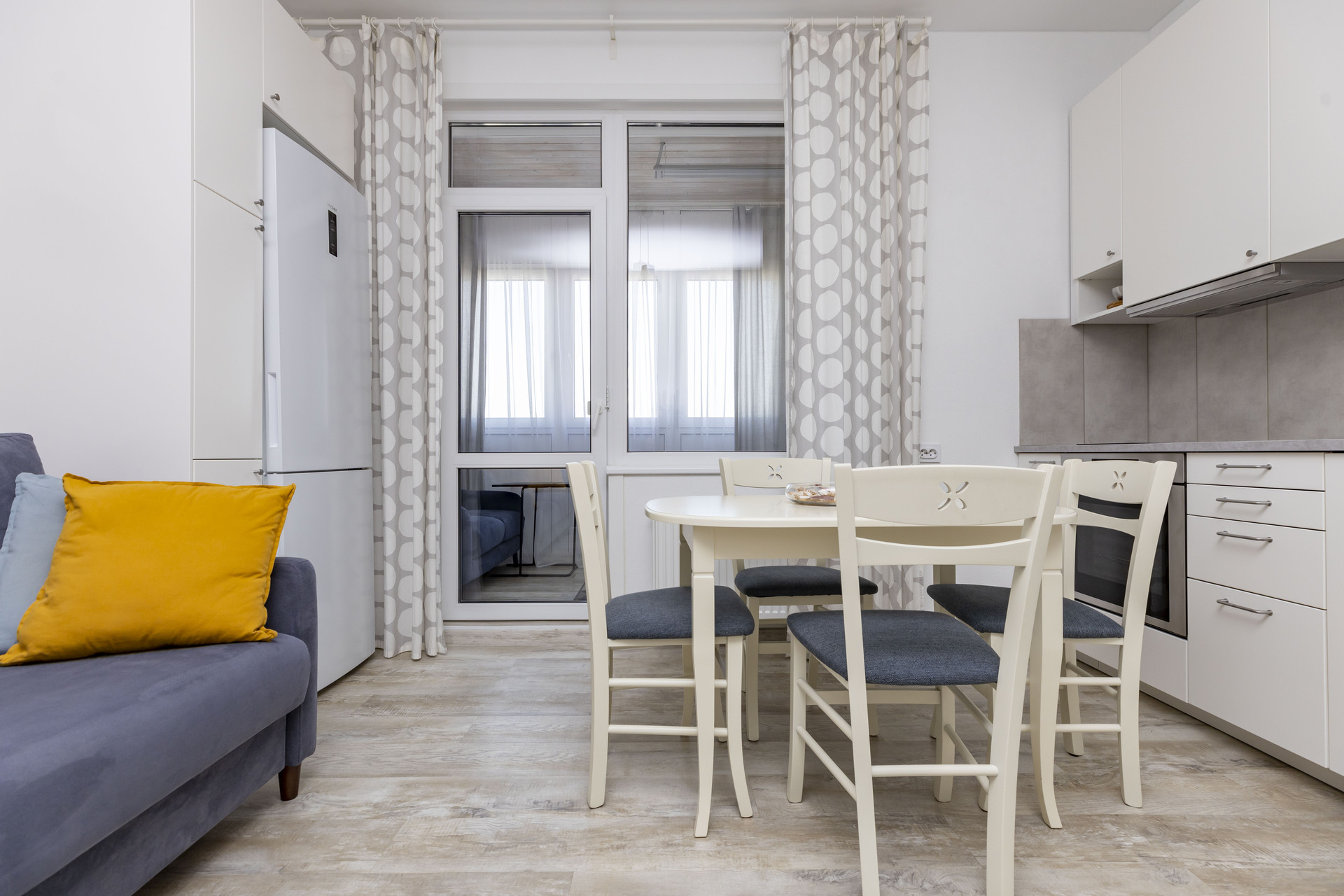 Кухня-гостиная 15,5 кв. м с выходом на лоджию площадью 13,2 кв. м. Лоджия с полной чистовой отделкой, утеплением, заменено фасадное остекление на теплое.