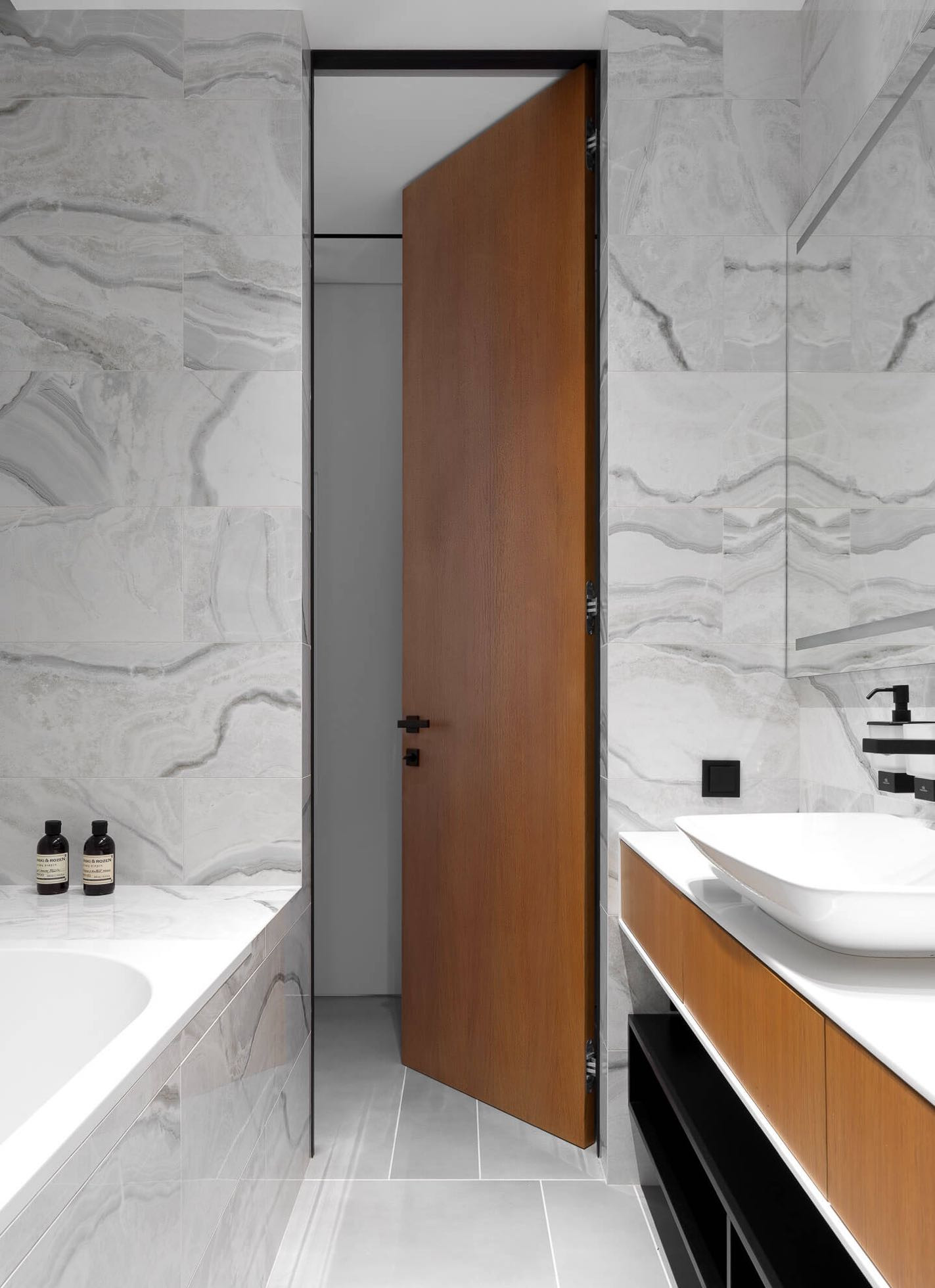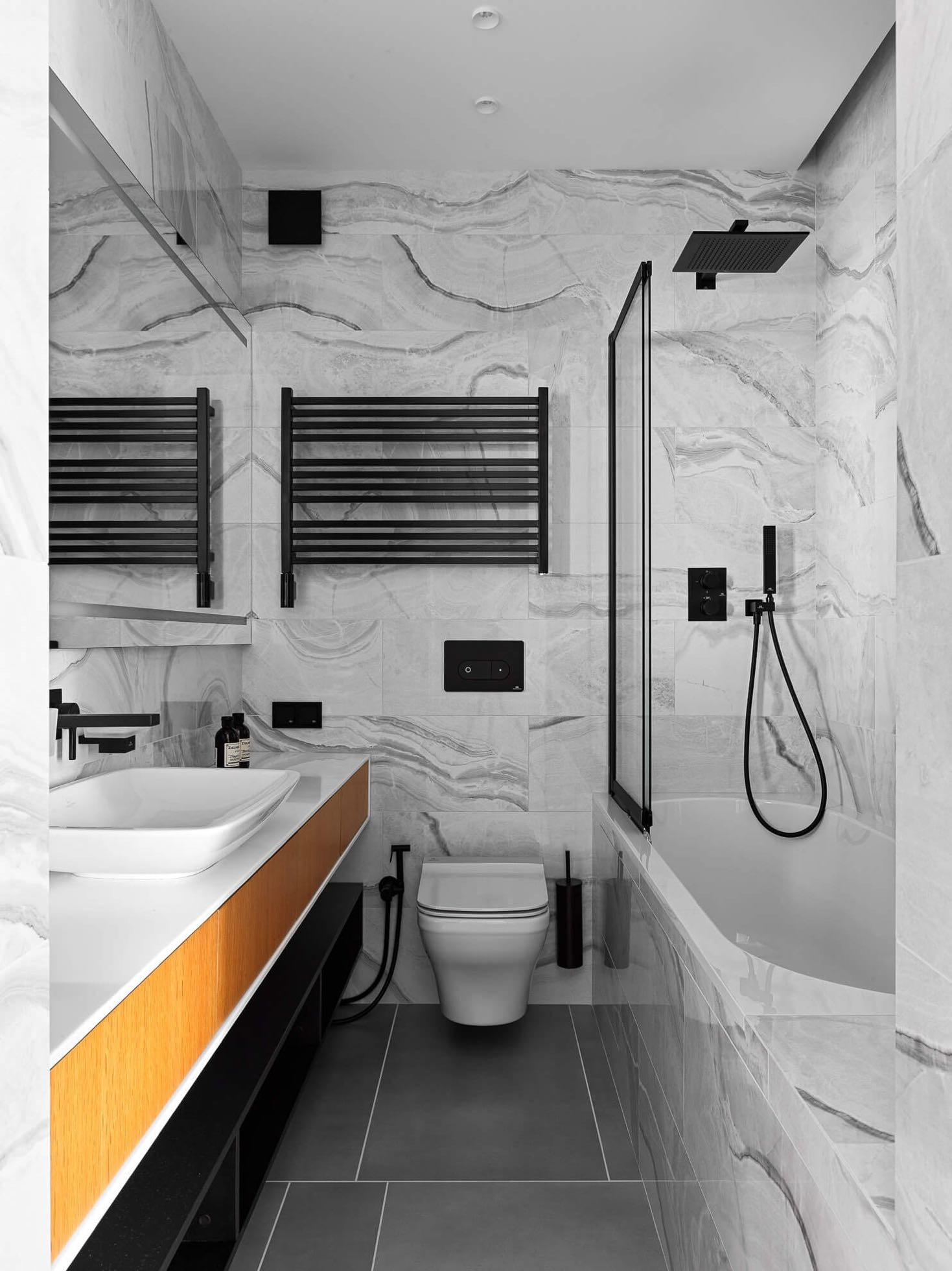 Широкоформатный керамогранит Parcelanosa и 5 отдельных зон подогрева по всей квартире.
