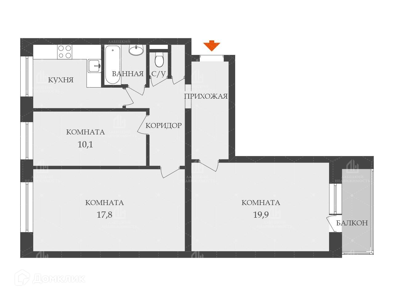 3-комнатная квартира, 72 м2, этаж 4 / 12, на продажу в Санкт-Петербурге, улица Академика Байкова, 7к2