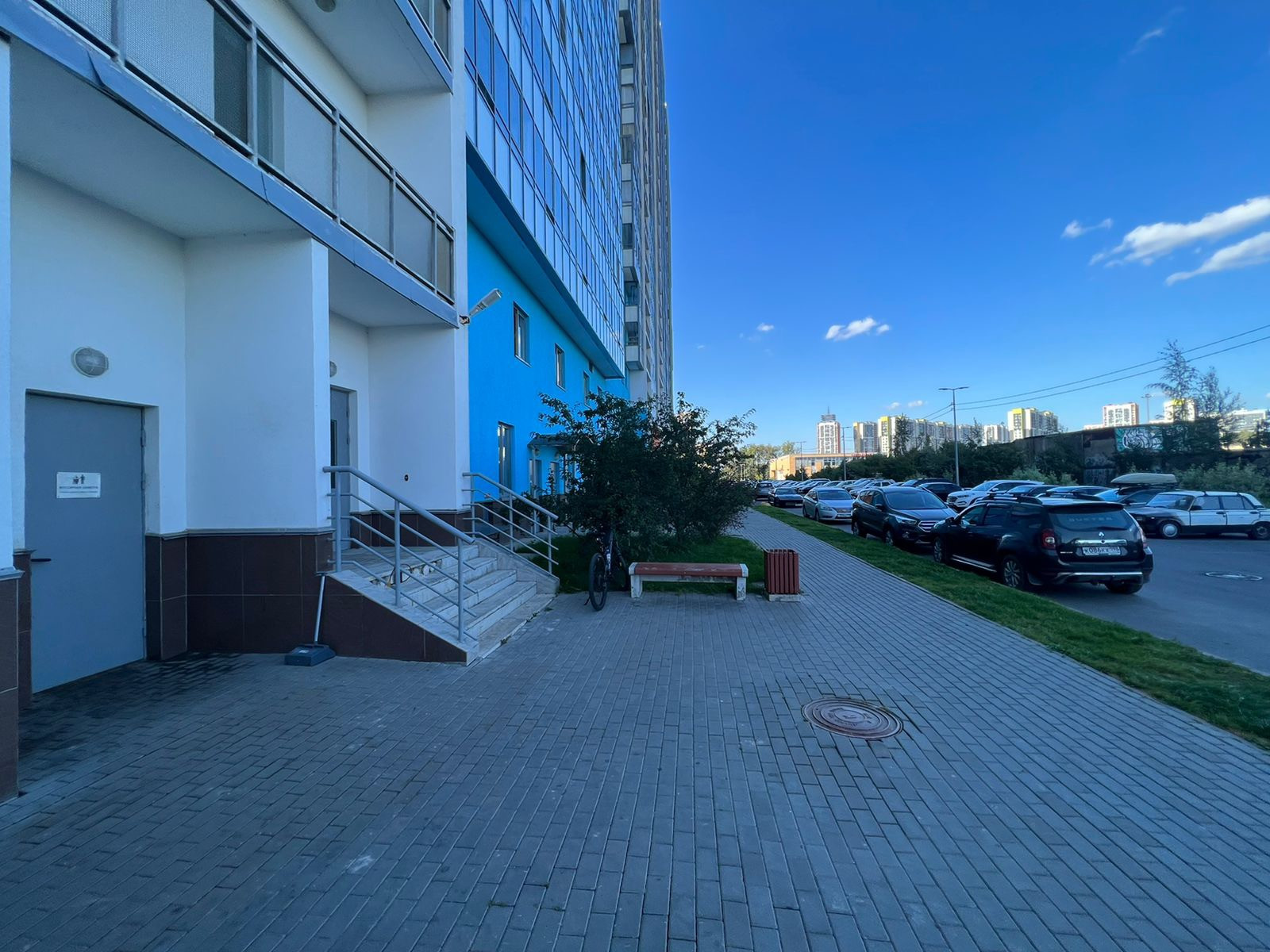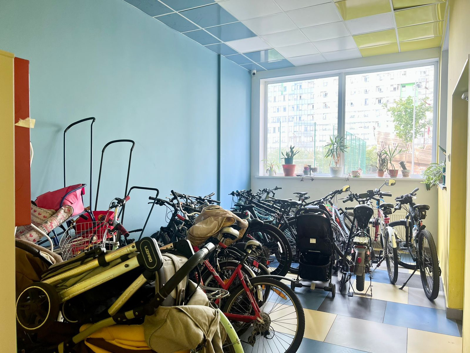 В парадной есть большое пространство для хранения велосипедов и колясок, а также зона для мытья колес и лап собак.