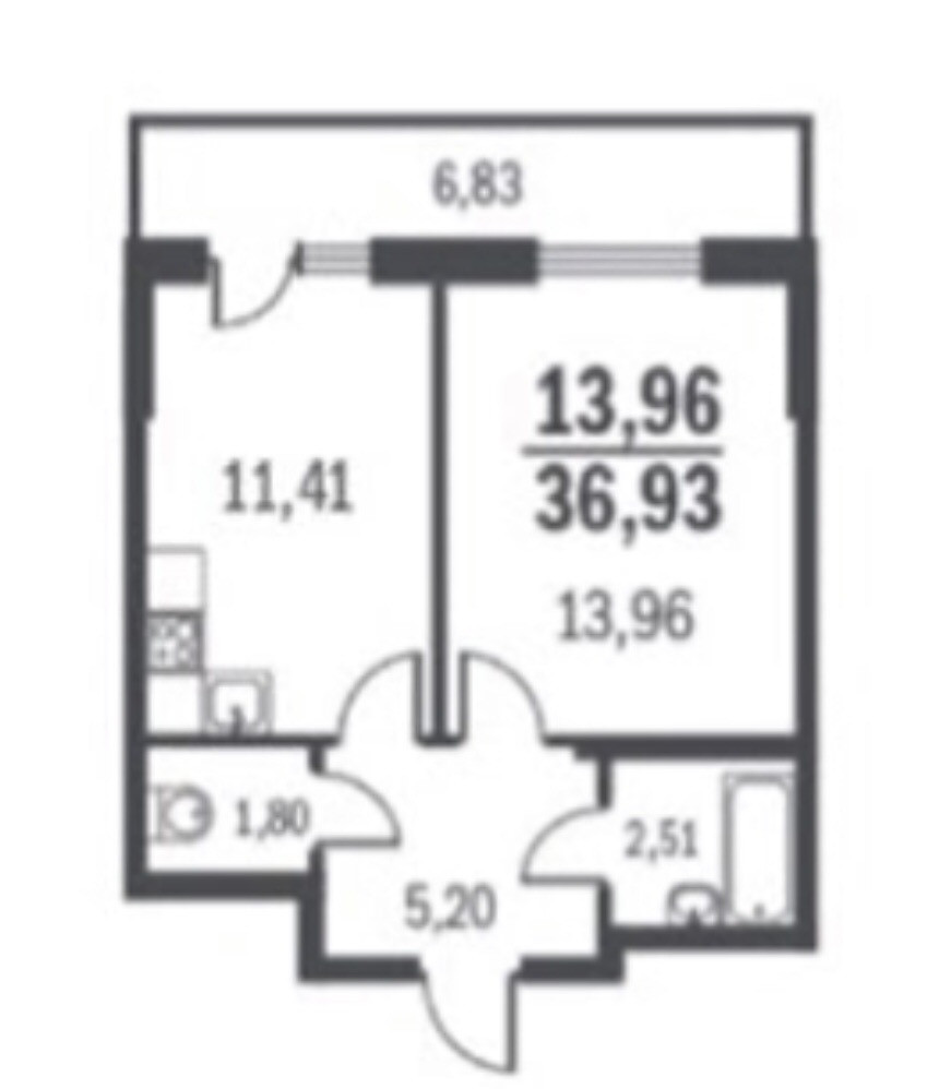 Есть вместительная лоджия- 6,83 м.