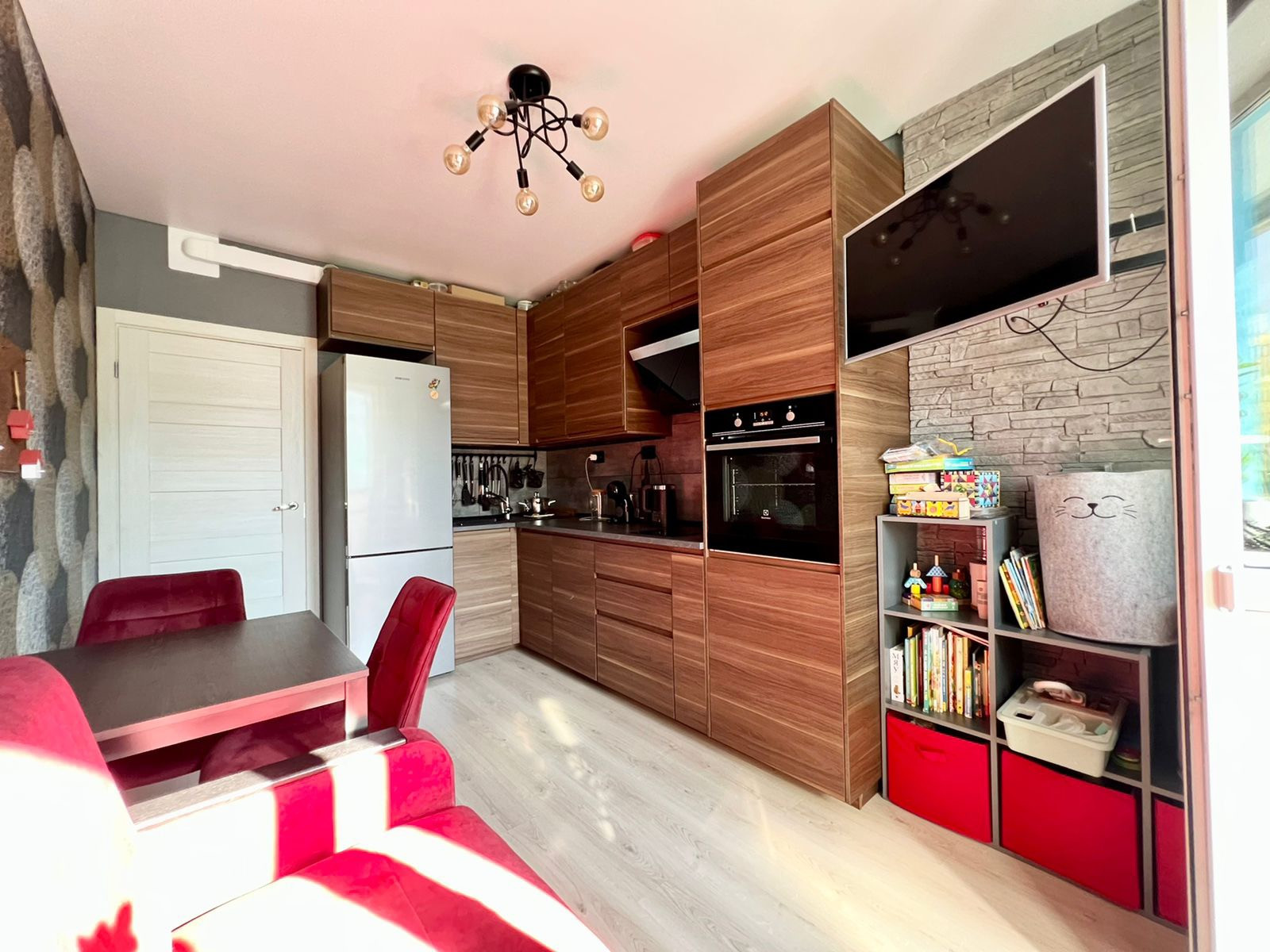 В квартире сделан дизайнерский ремонт с использованием дорогостоящихи и качественных материалов.