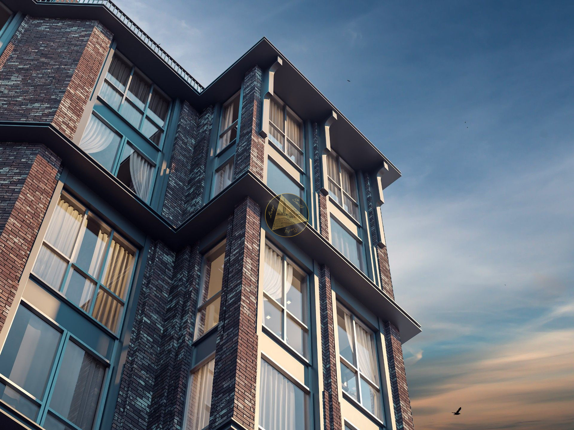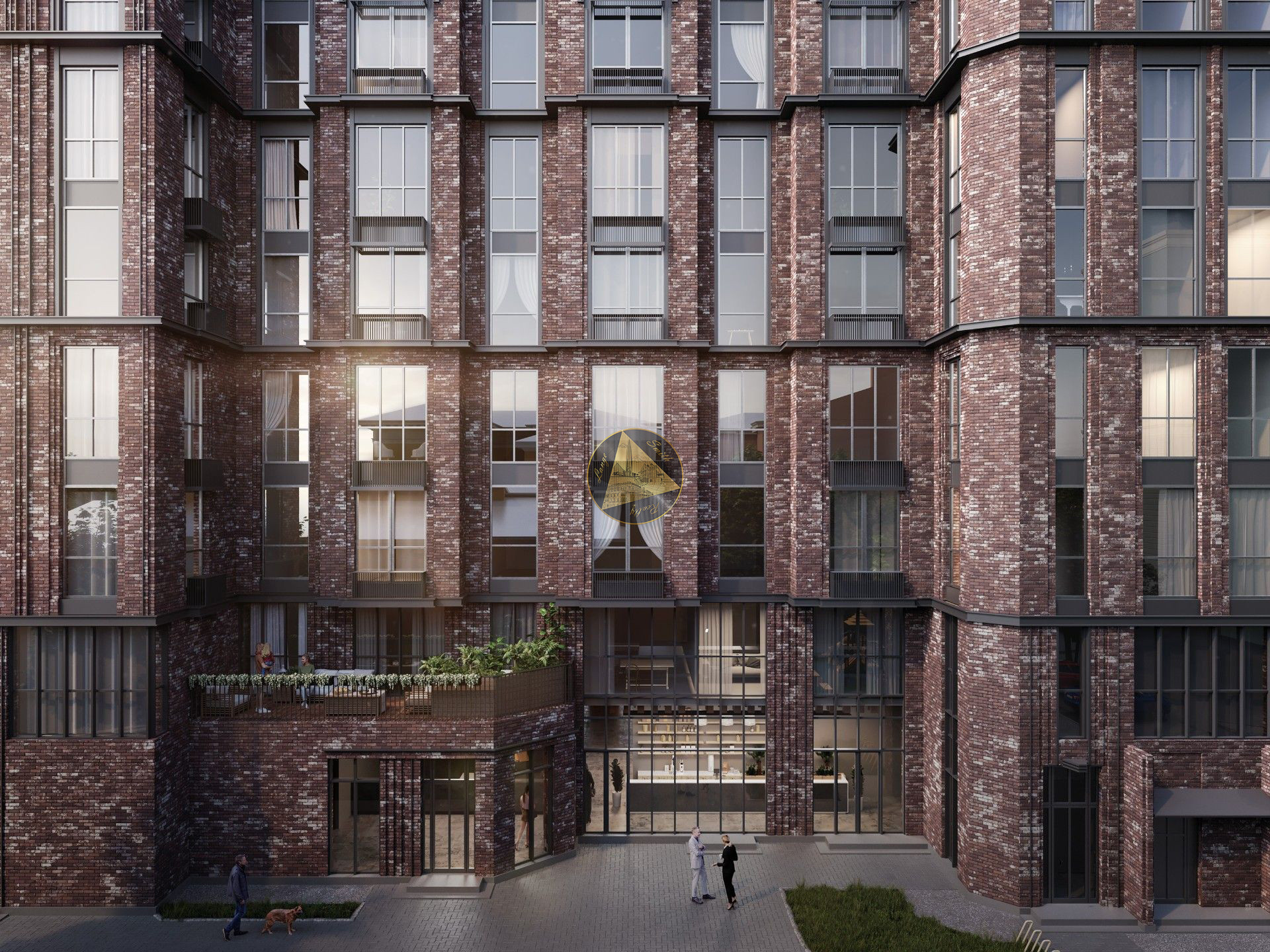 - Облик дома выполнен по проекту мастерской Liphart Architects в стиле кирпичного ар-деко с элементами лофта. В отделке фасадов применяется натуральный облицовочный керамический кирпич бордового оттенка.
