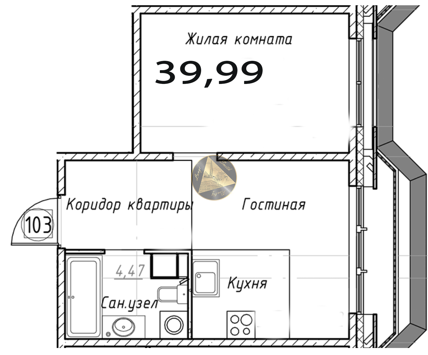 Общая площадь 39.99 м2