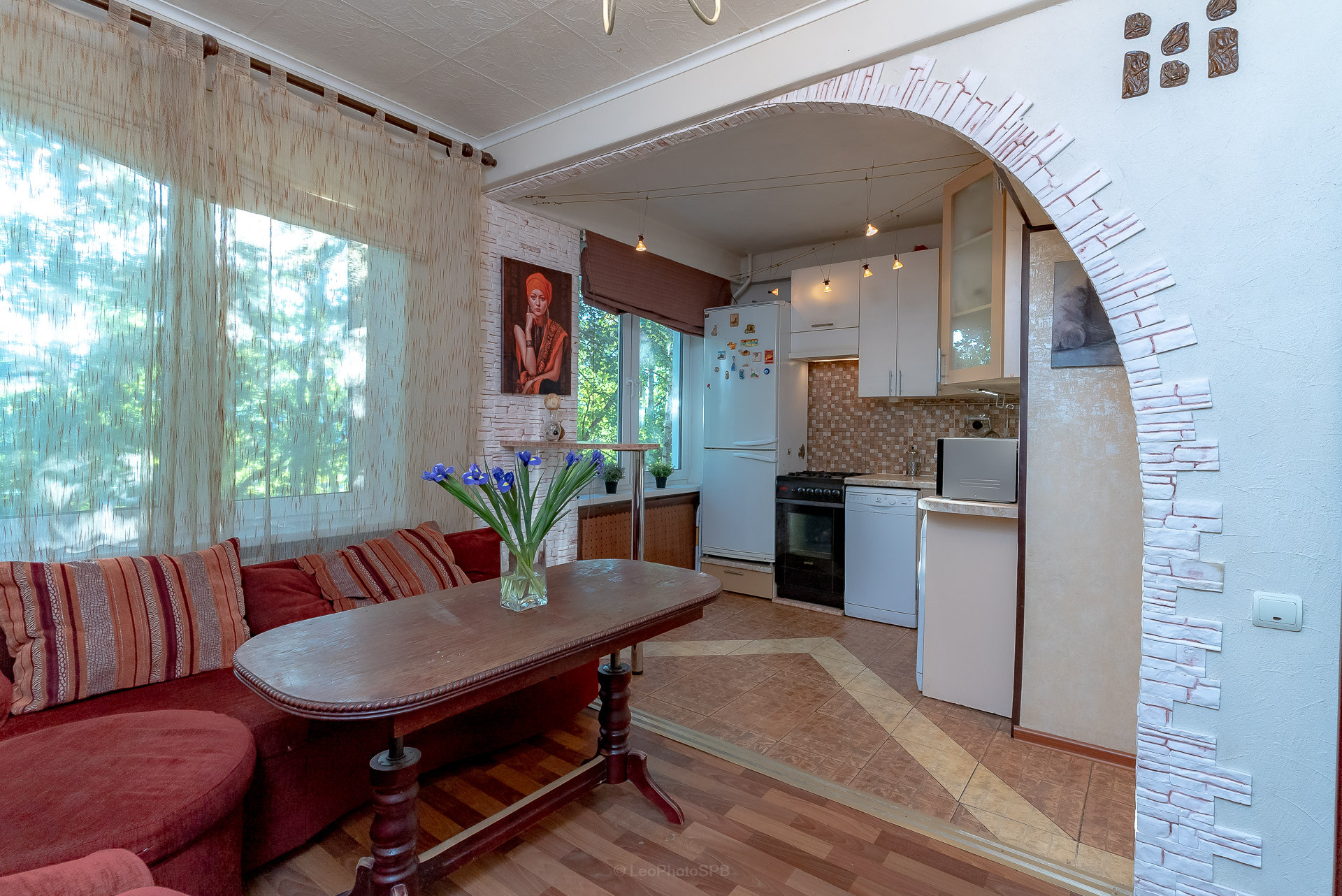 Жилая площадь составляет 39.2 квадратных метров, а кухня — 8.2 квадратных метров. Квартира после дизайнерского ремонта, который придаёт ей особый шарм и комфорт. Санузел раздельный, что является большим плюсом для семейного быта. Также имеется балкон, где можно насладиться чашкой кофе на свежем воздухе, любуясь видом на тихий двор.