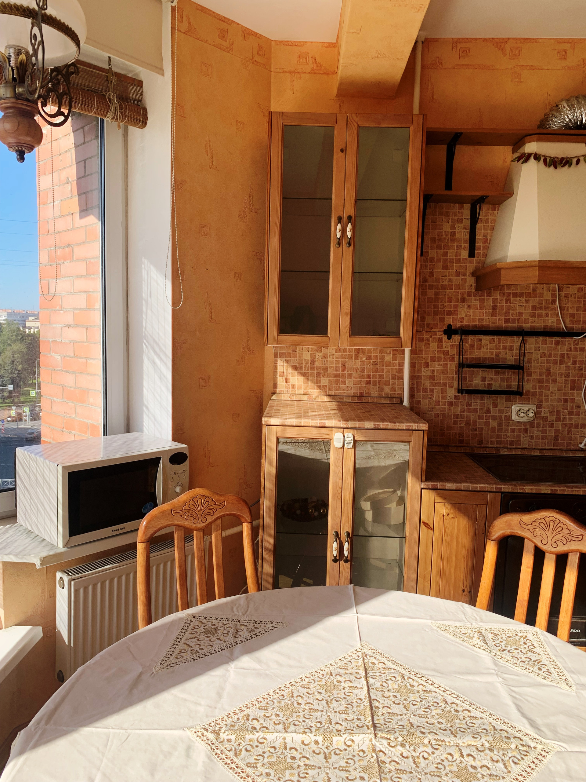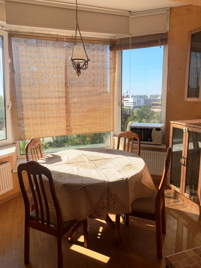 Из комнаты выход на остекленную утепленную лоджию. Кухня 11 кв. м с панорамным остеклением.