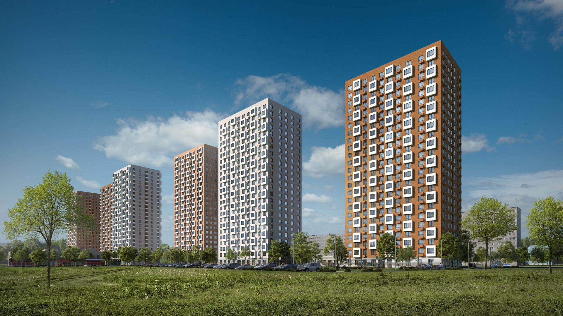 - оборудованные красивые детские и спортивные площадки, наземные места для парковки авто- и вело-транспорта;