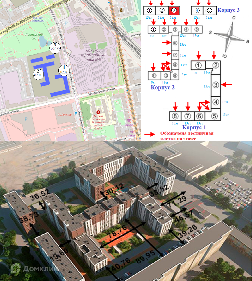 3-комнатная квартира, 77.29 м2, этаж 2 / 13, на продажу в Санкт-Петербурге, Студенческая улица, 14к1