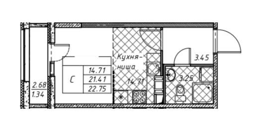 Общая площадь 23.17 м2