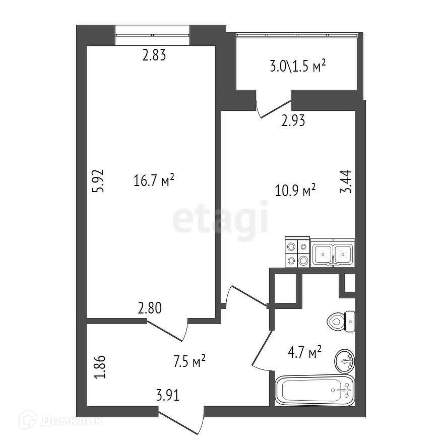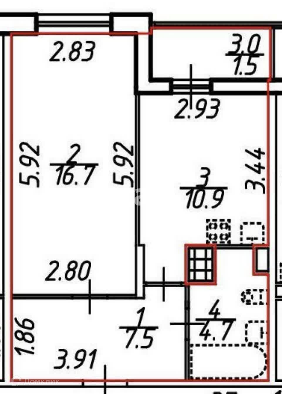Балкон, лоджия 1 балкон