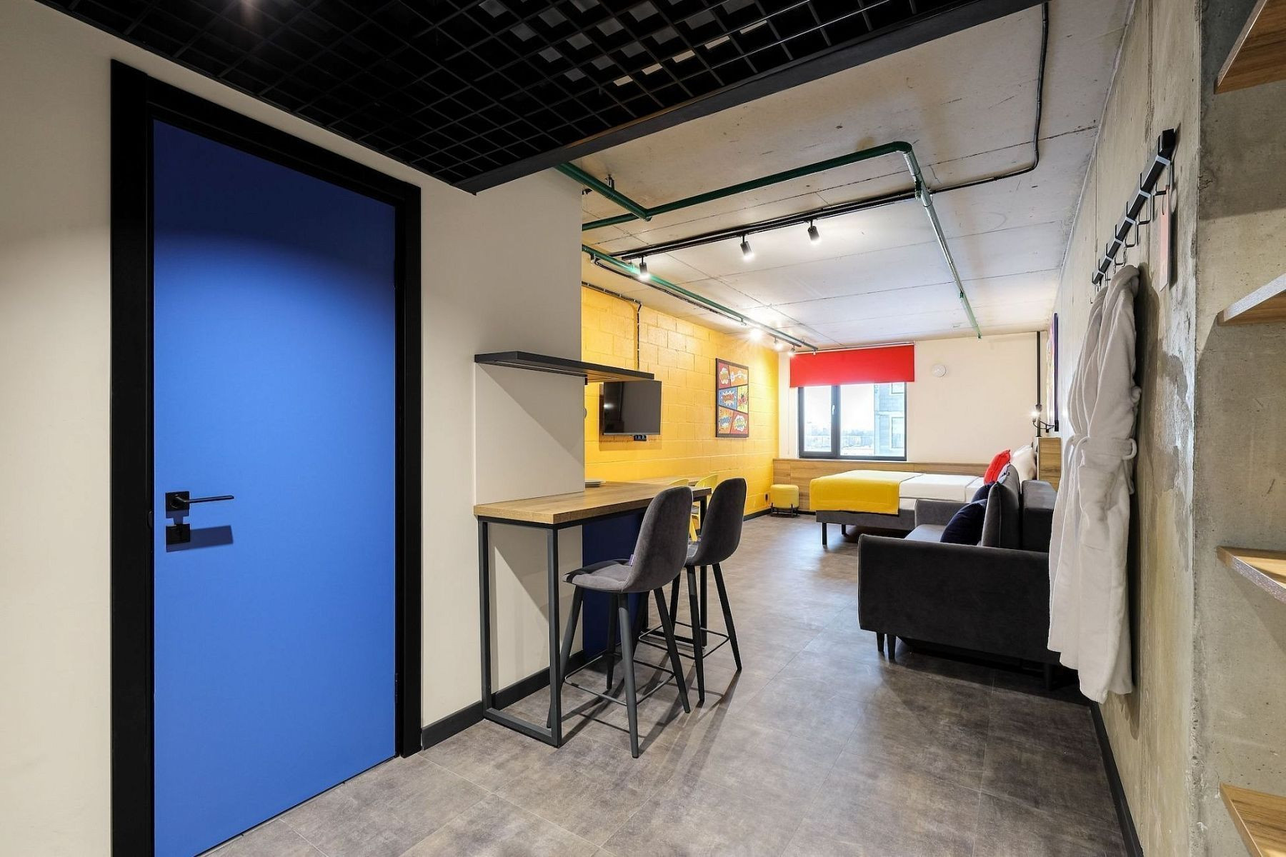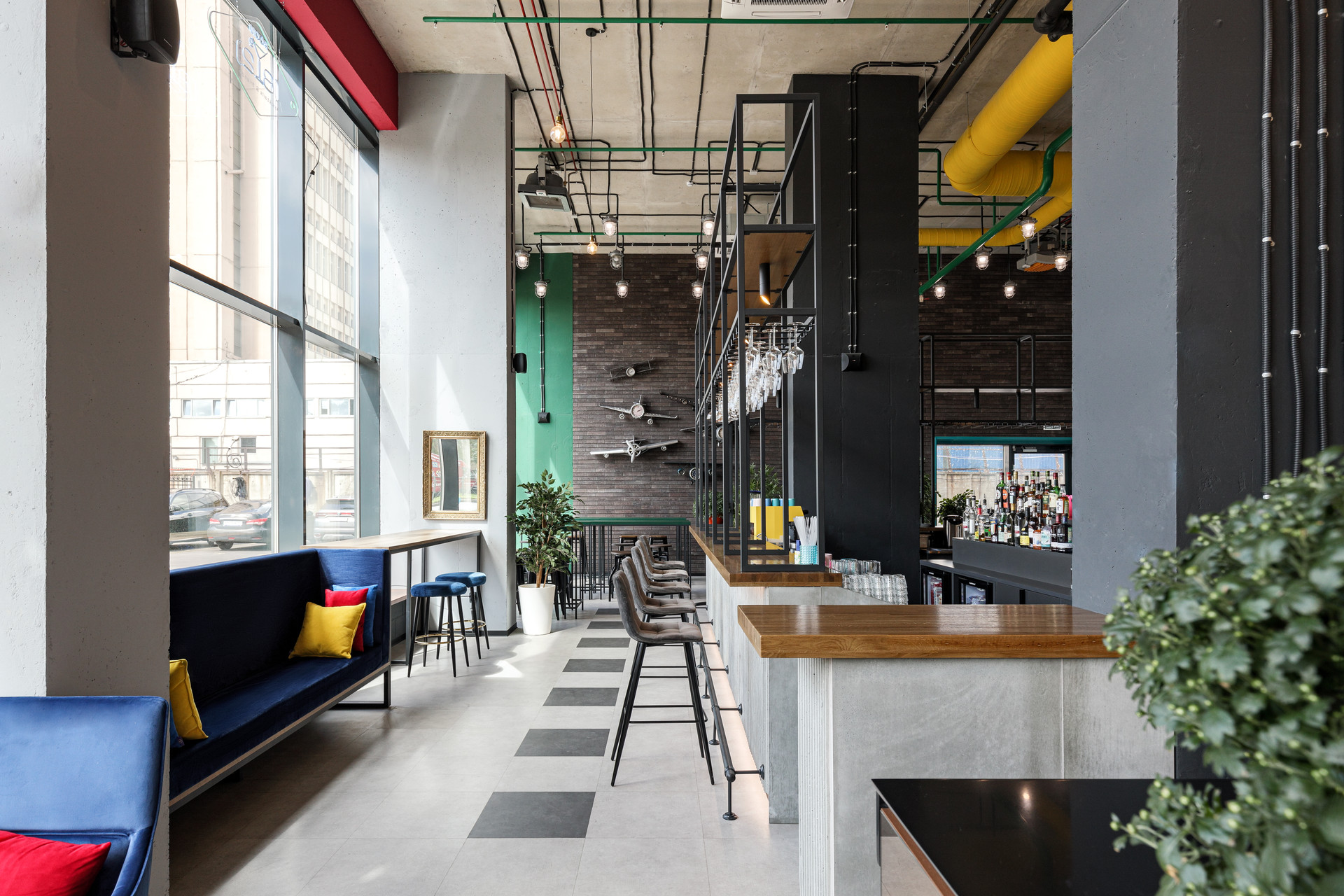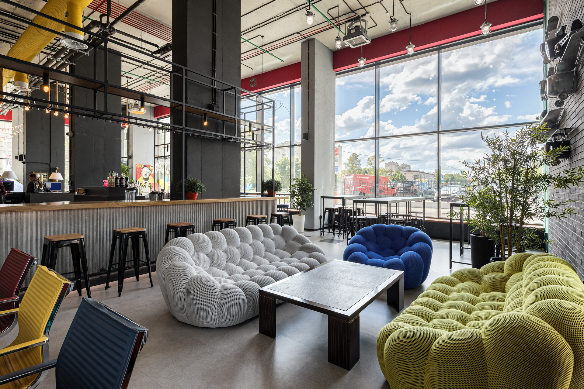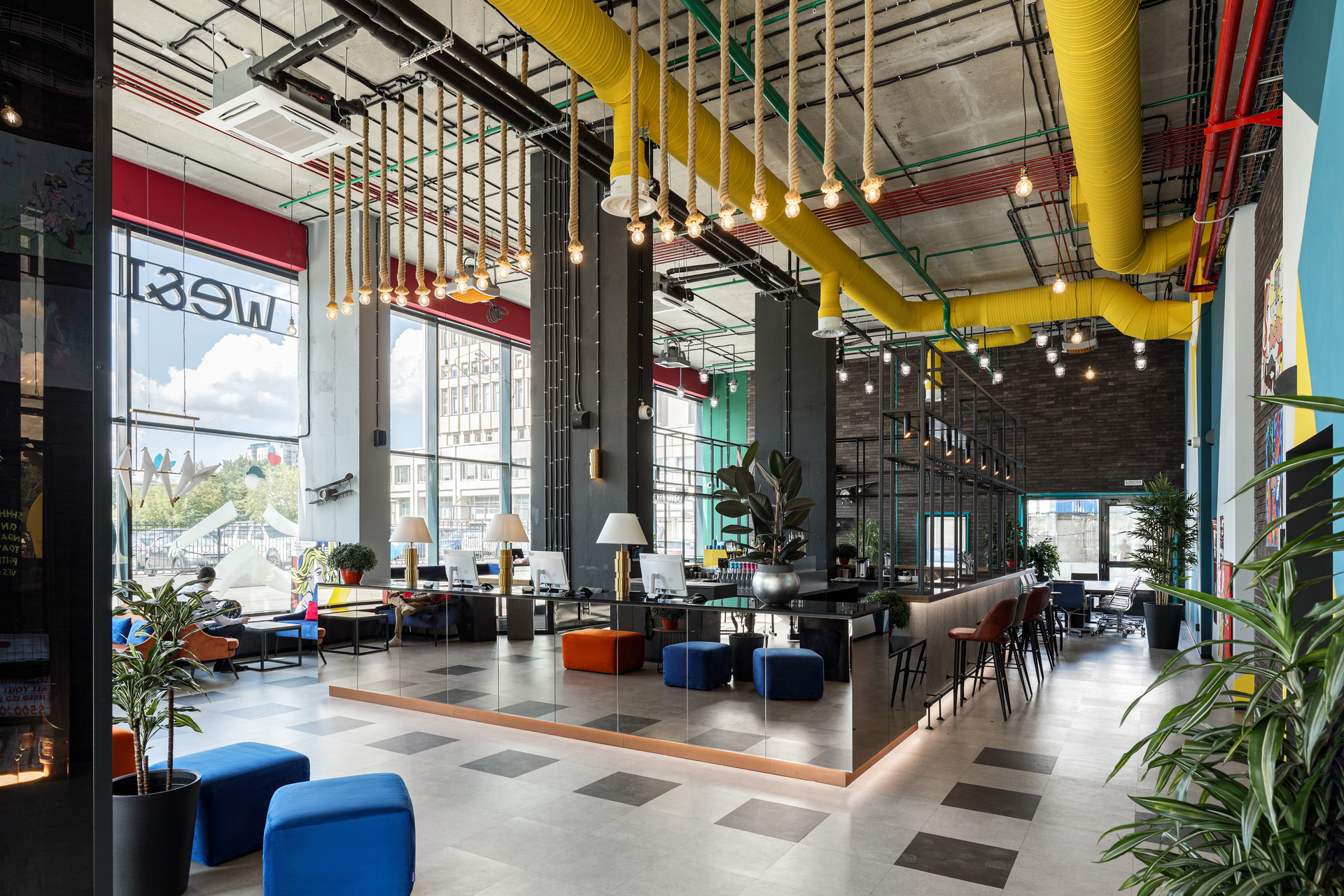 - Зона ресепшн, охрана, бар, фитнес-зал.