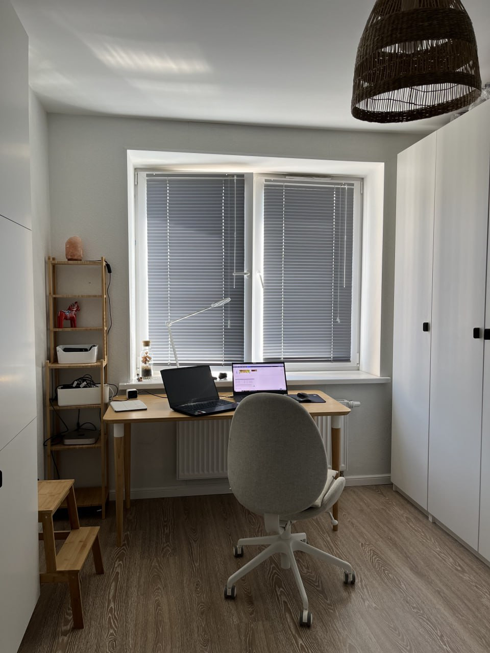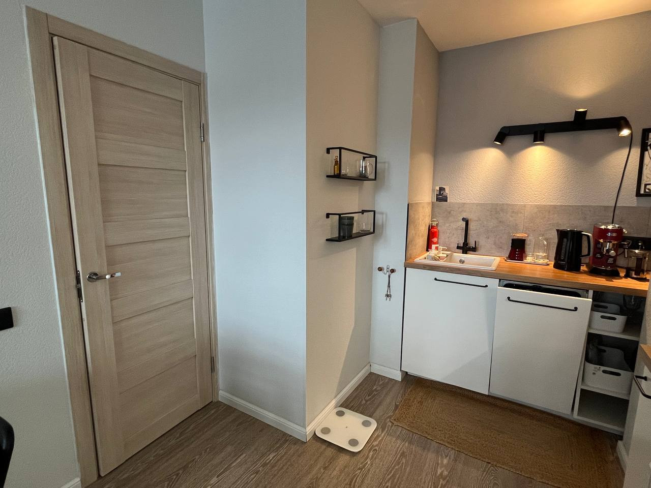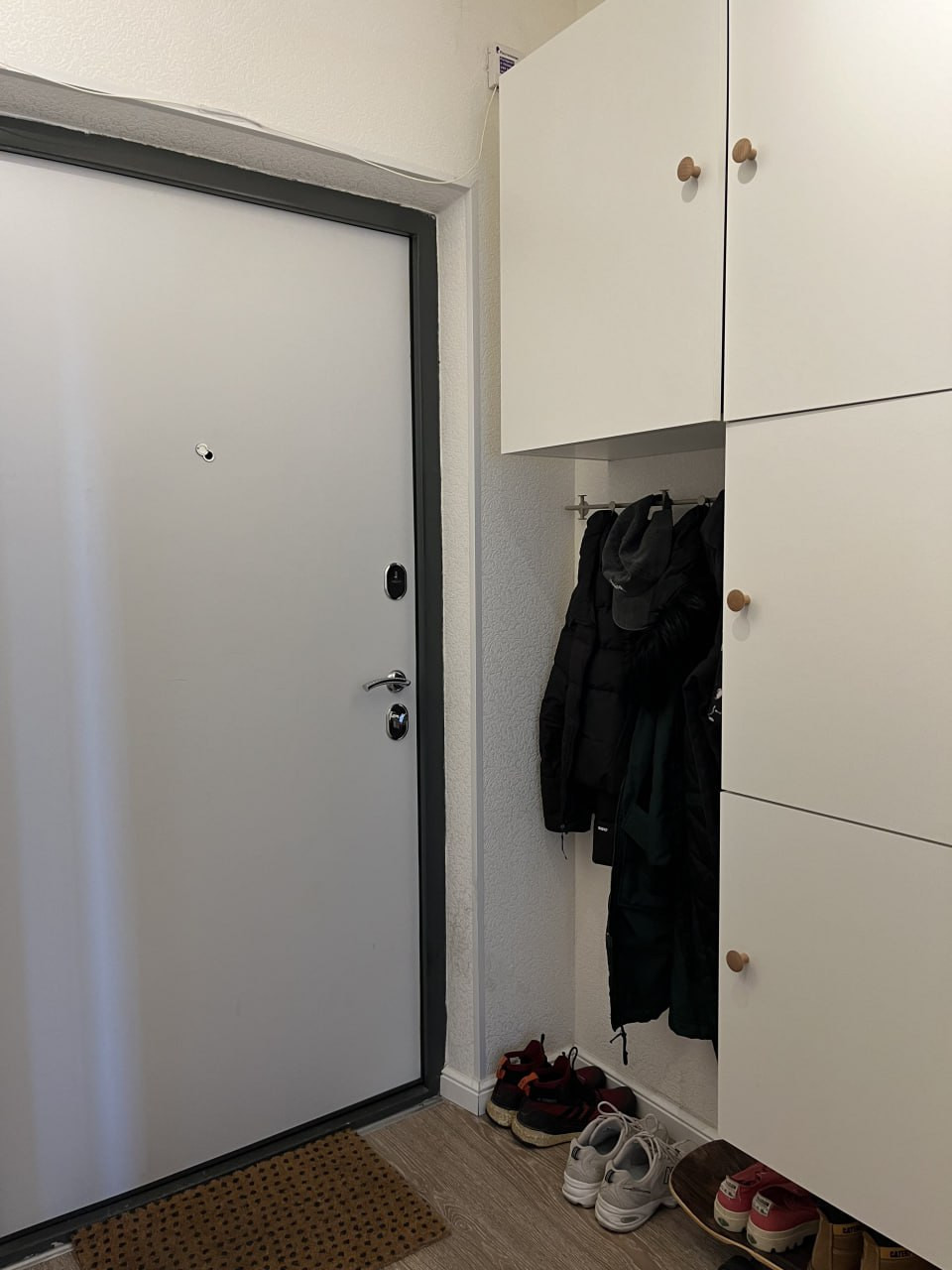 Компактная, но можно организовать место для хранения всех нужных вещей — от верхней одежды до обуви.