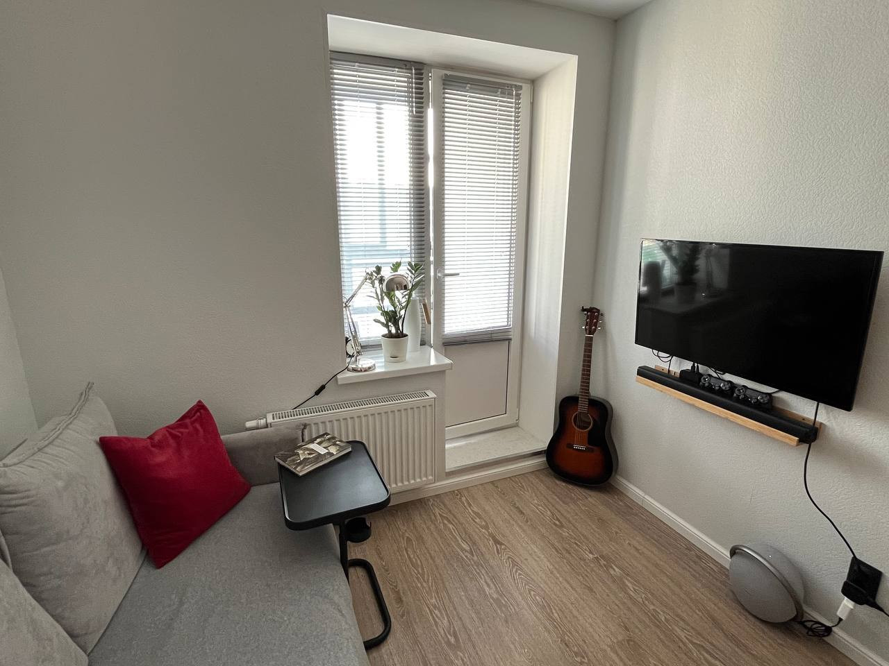 Здесь достаточно места для дивана и ТВ-зоны. Из кухни выход на остекленную лоджию (2.6 м²), где можно устроить зону отдыха или использовать как дополнительное место для хранения.
