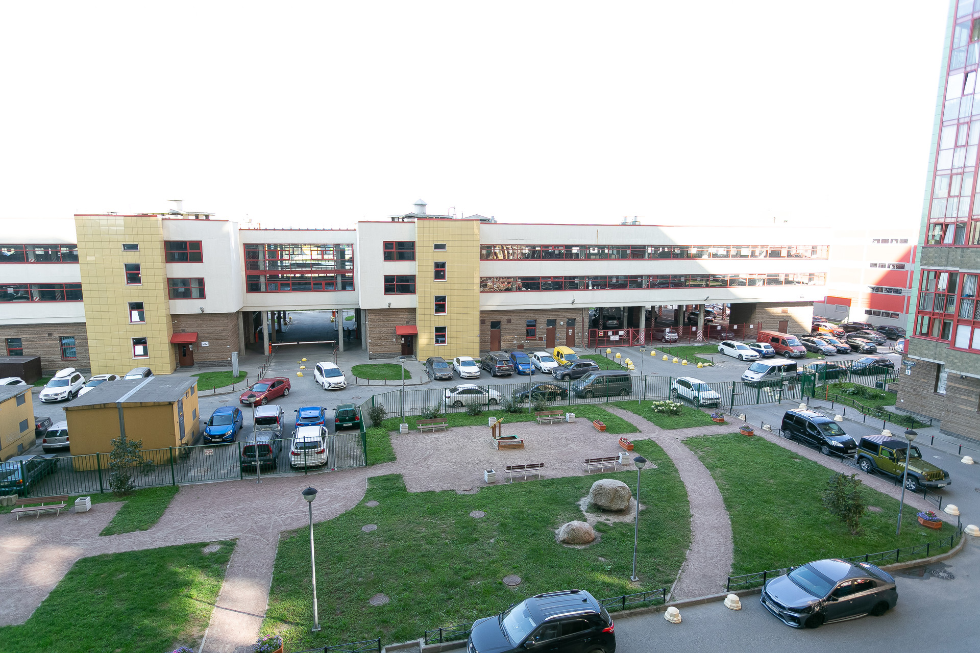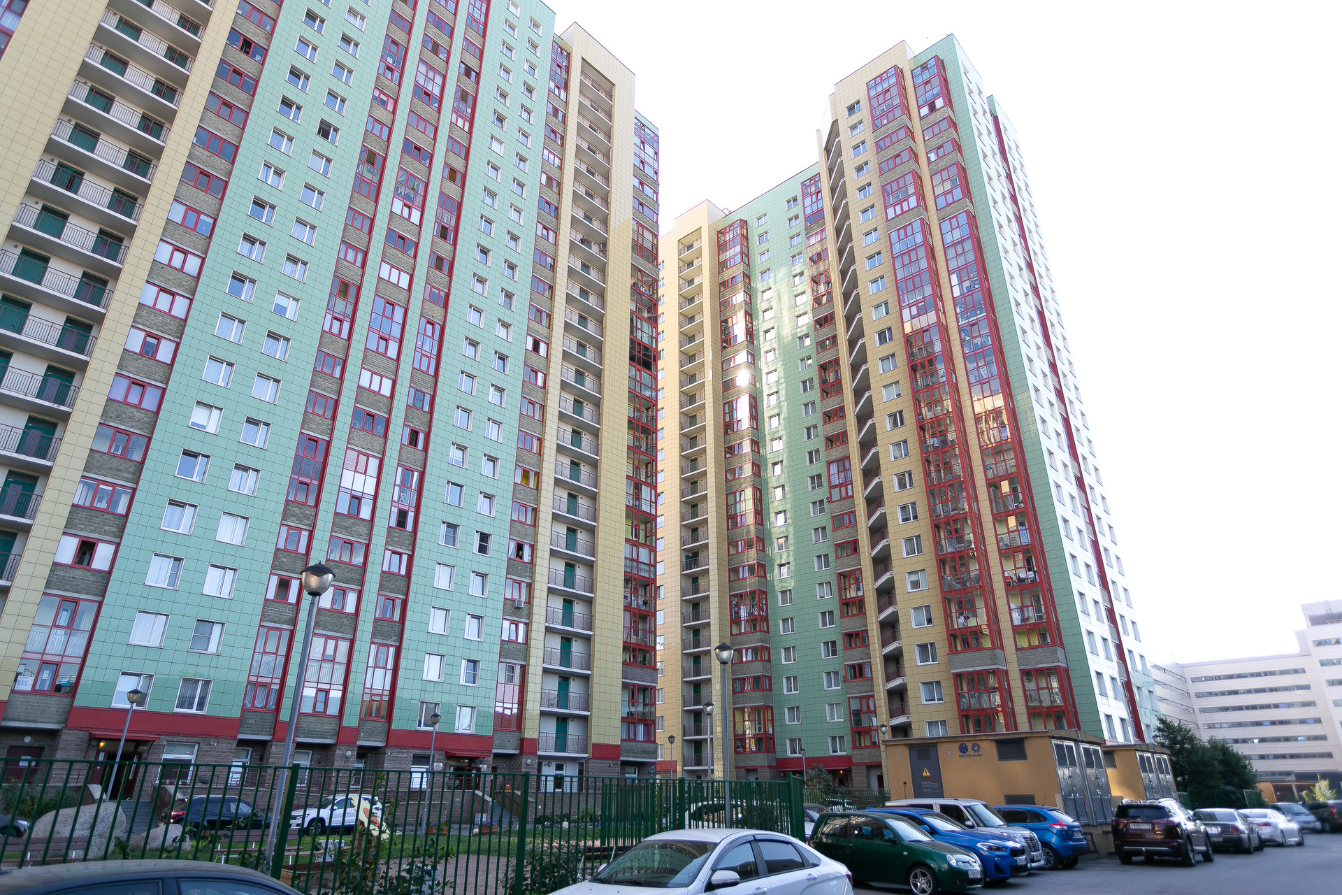 Дом находится в отличном состоянии, парадная чистая, без посторонних запахов, есть консьерж. В доме имеются два пассажирских и один грузовой лифты, а также пандус, что делает передвижение удобным для всех жильцов. Прямо перед домом есть платная многоуровневая парковка, что решает вопрос с парковкой машины. Двор закрытый, внутри есть детская площадка.