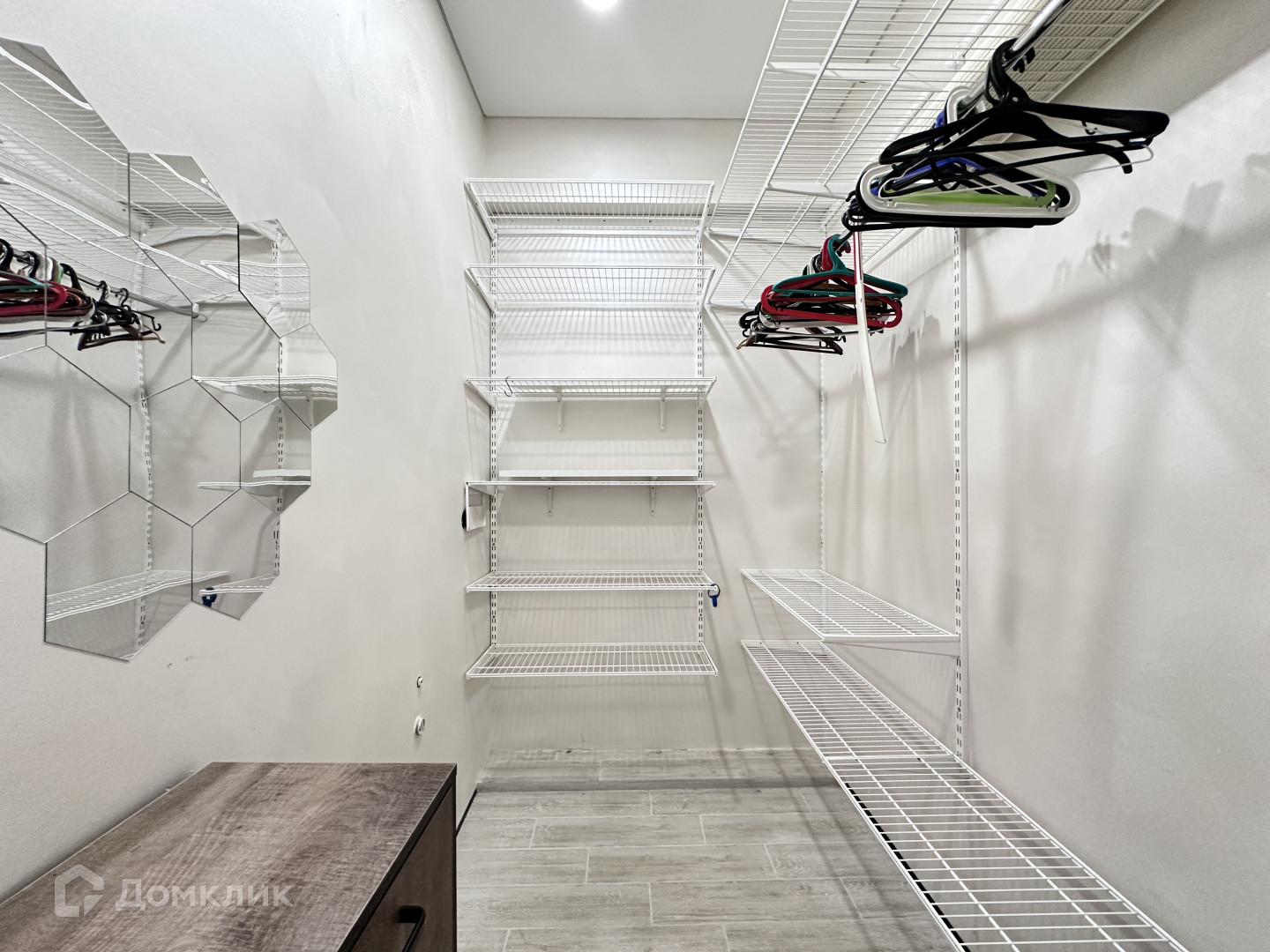 Просторная гардеробная - еще одно преимущество, не каждая квартира имеет отдельное оборудованное место для хранения вещей.