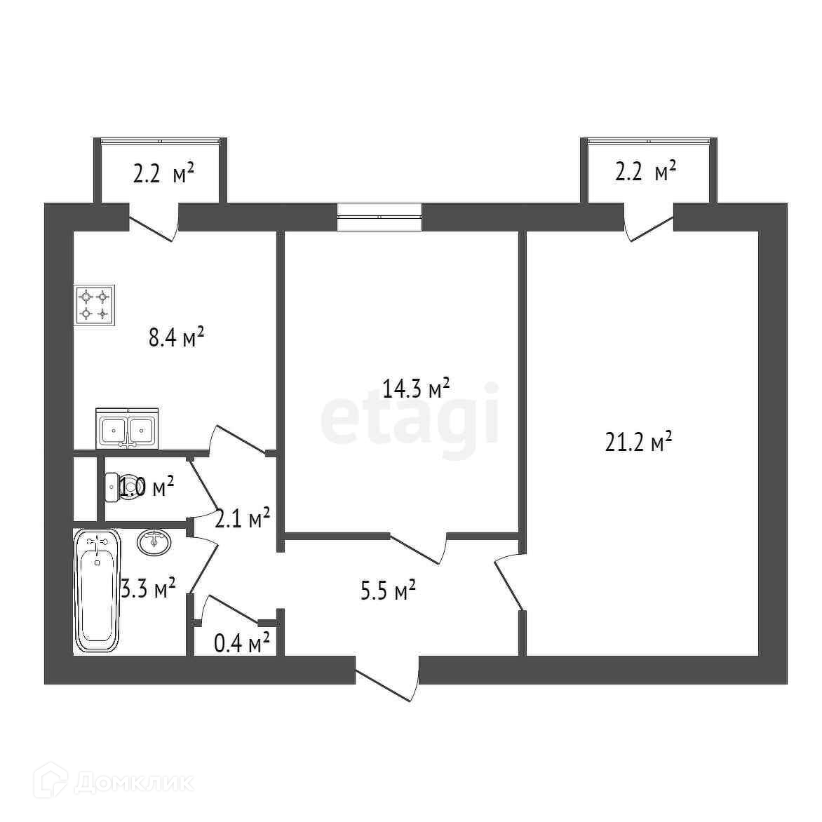 Общая площадь 56.2 м2
