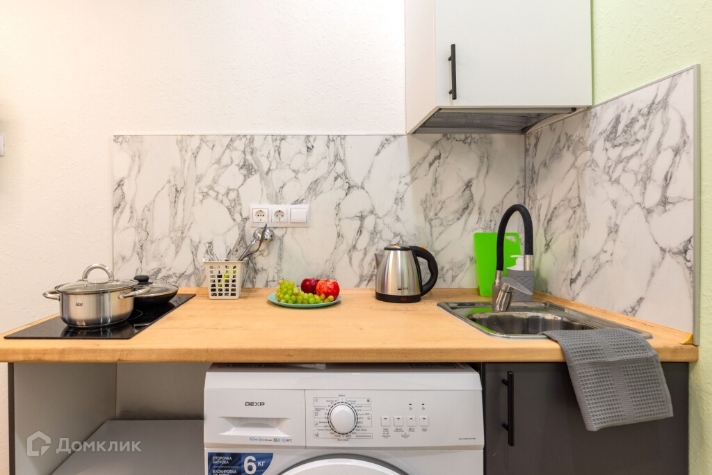 Техника: ТВ, плита индукционная, стиральная машина, холодильник, бойлер, фен, светильники.