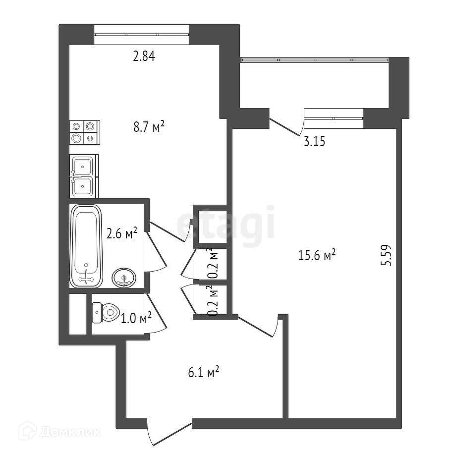 Жилая площадь 15.6 м2