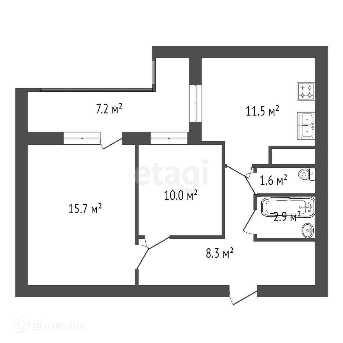 Количество комнат 2