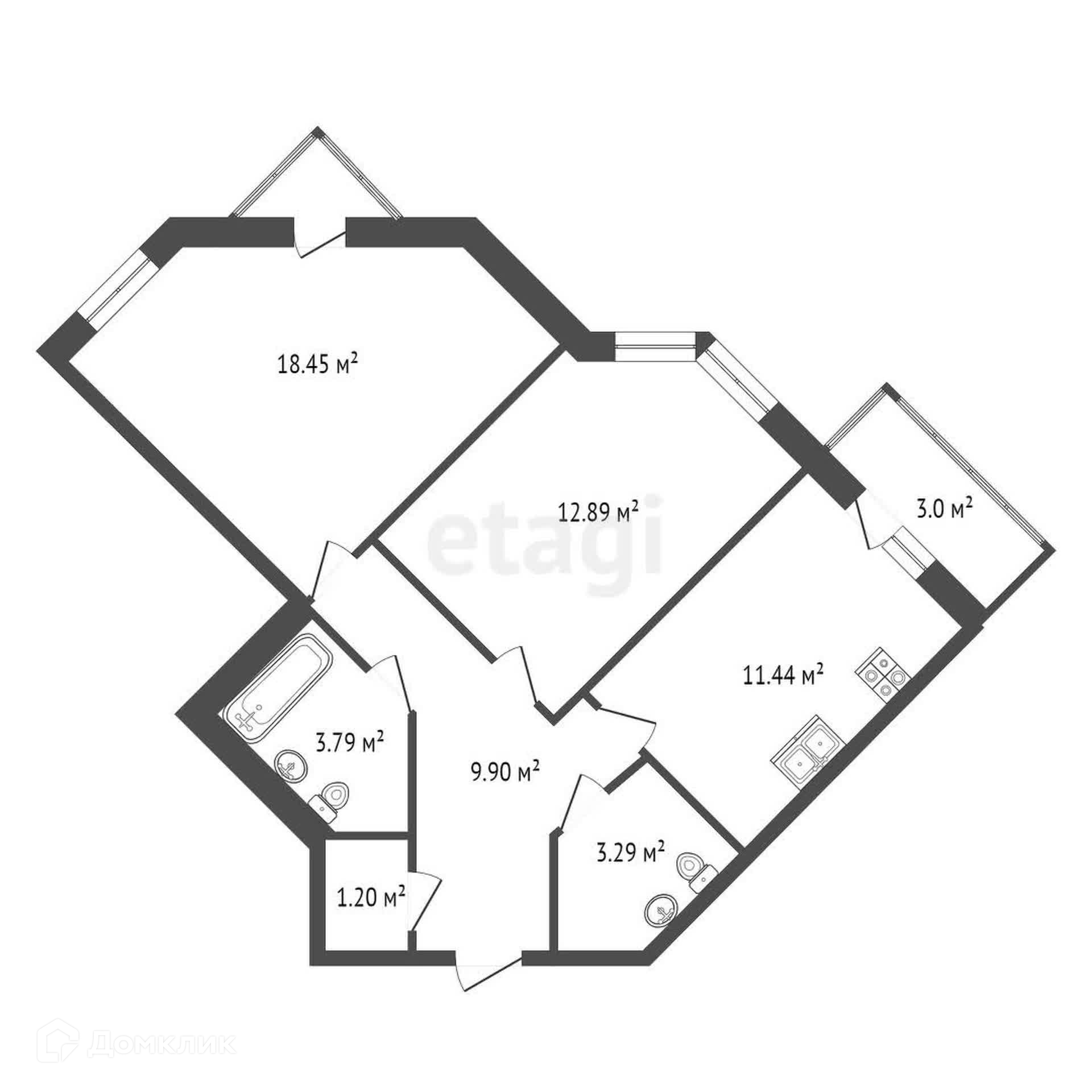 Общая площадь 61.6 м2