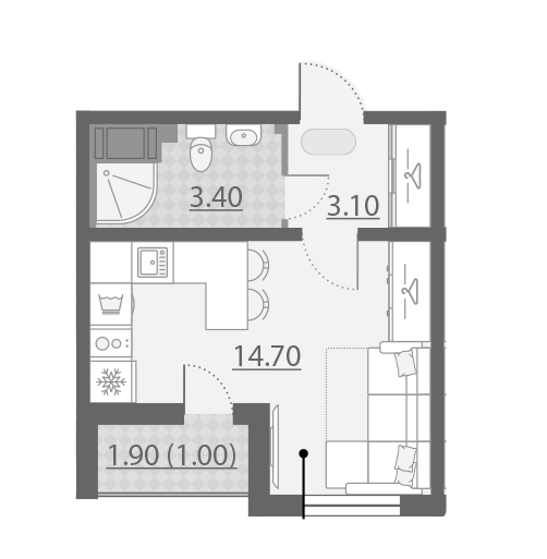 Балкон, лоджия 1 балкон