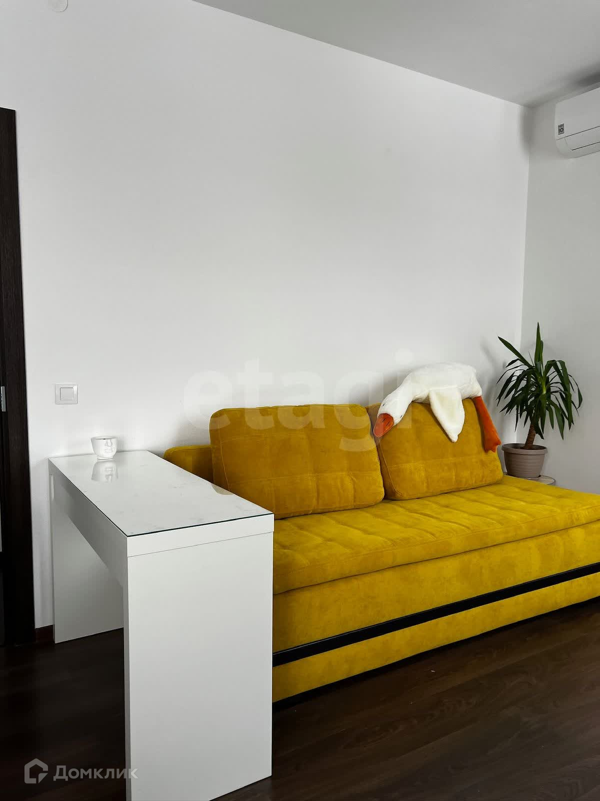 кондиционер, в комнате – большой шкаф для хранения вещей и кровать с