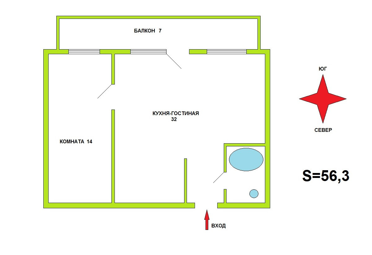 Балкон, лоджия 1 балкон