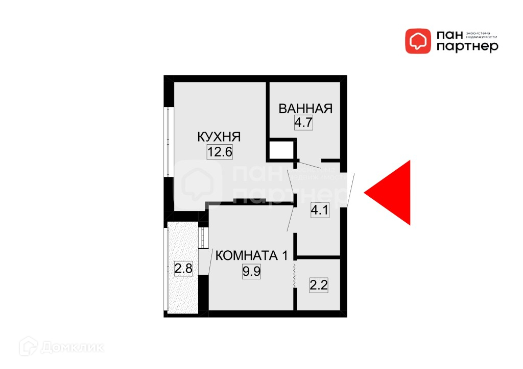 Общая площадь 34 м2