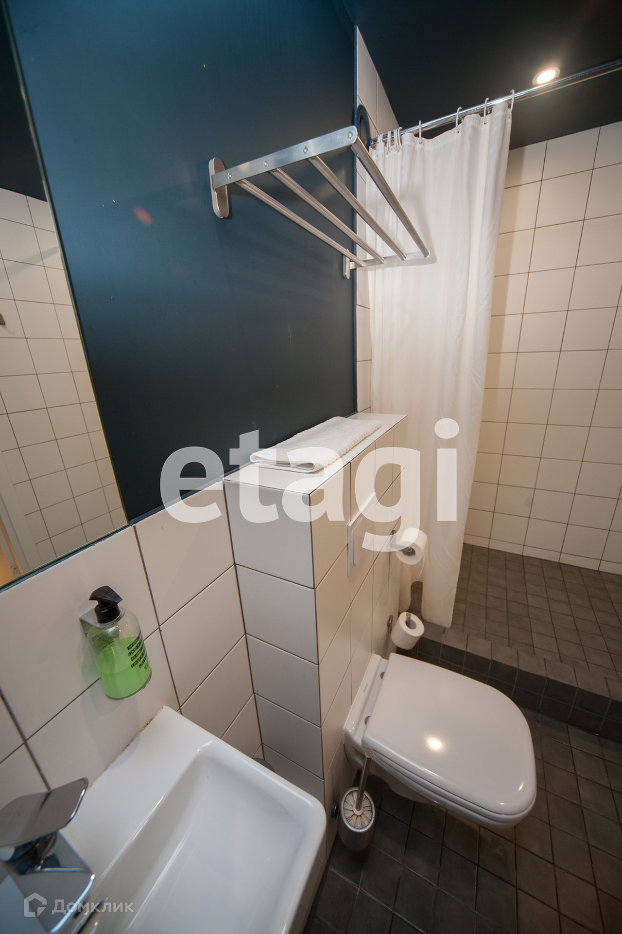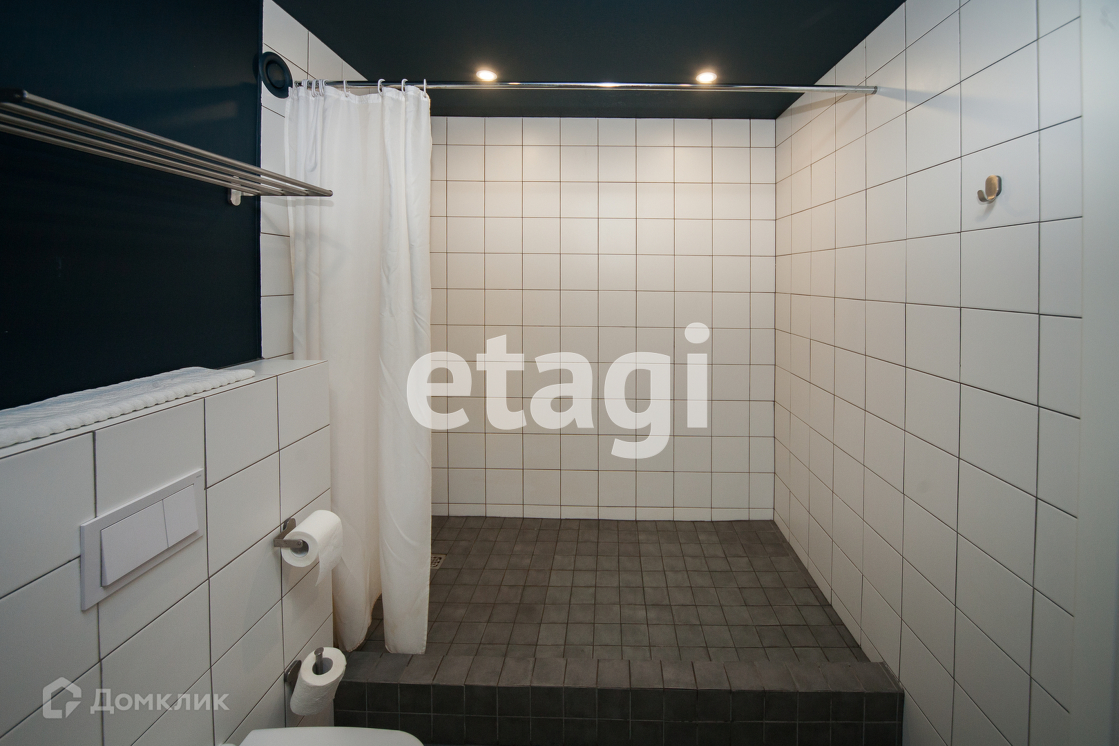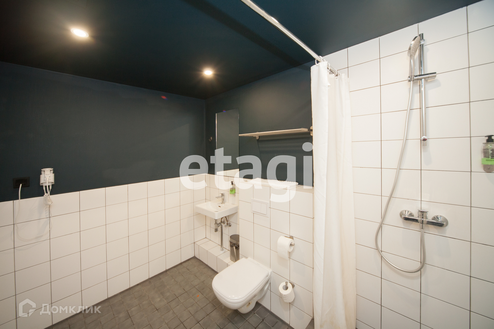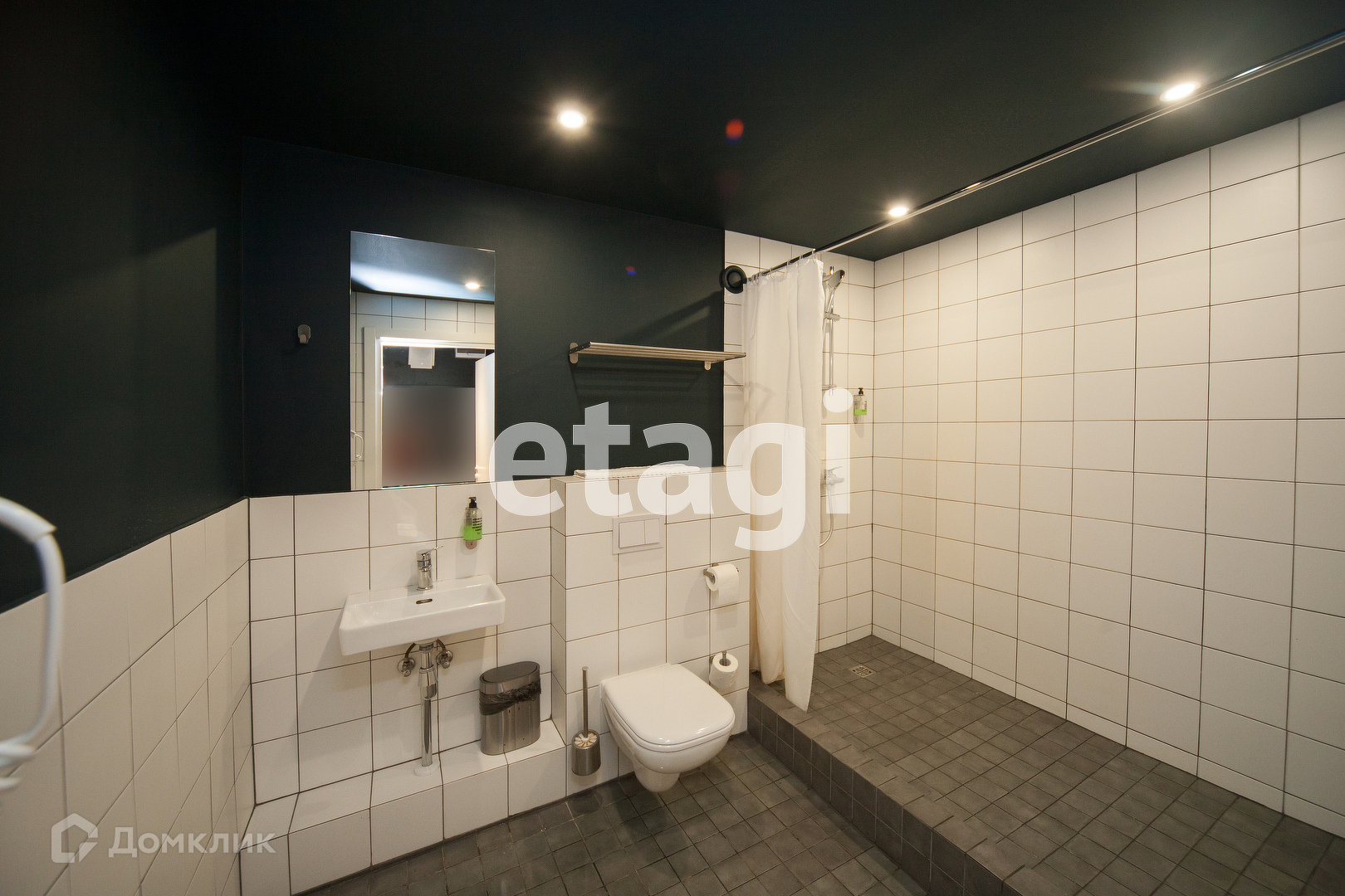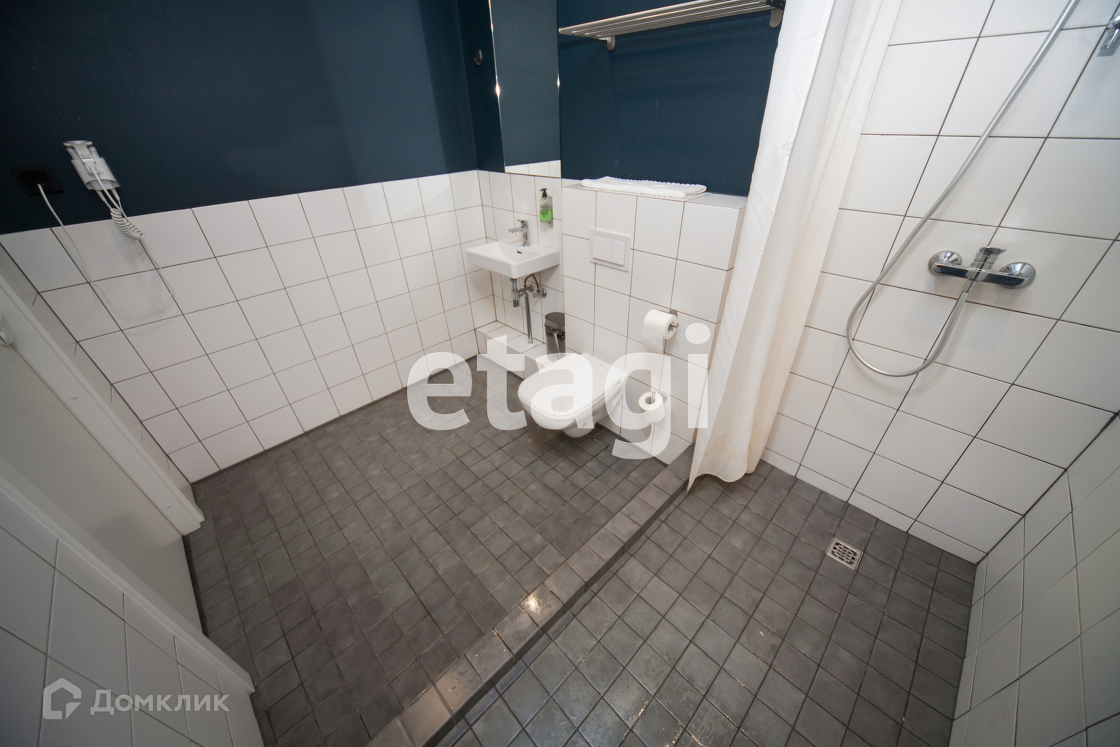 Большой совместный санузел с душевой кабиной.