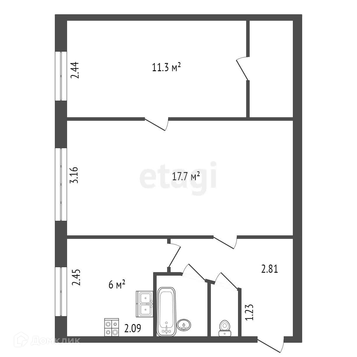 Общая площадь 43.2 м2