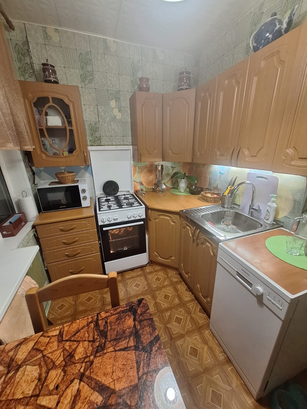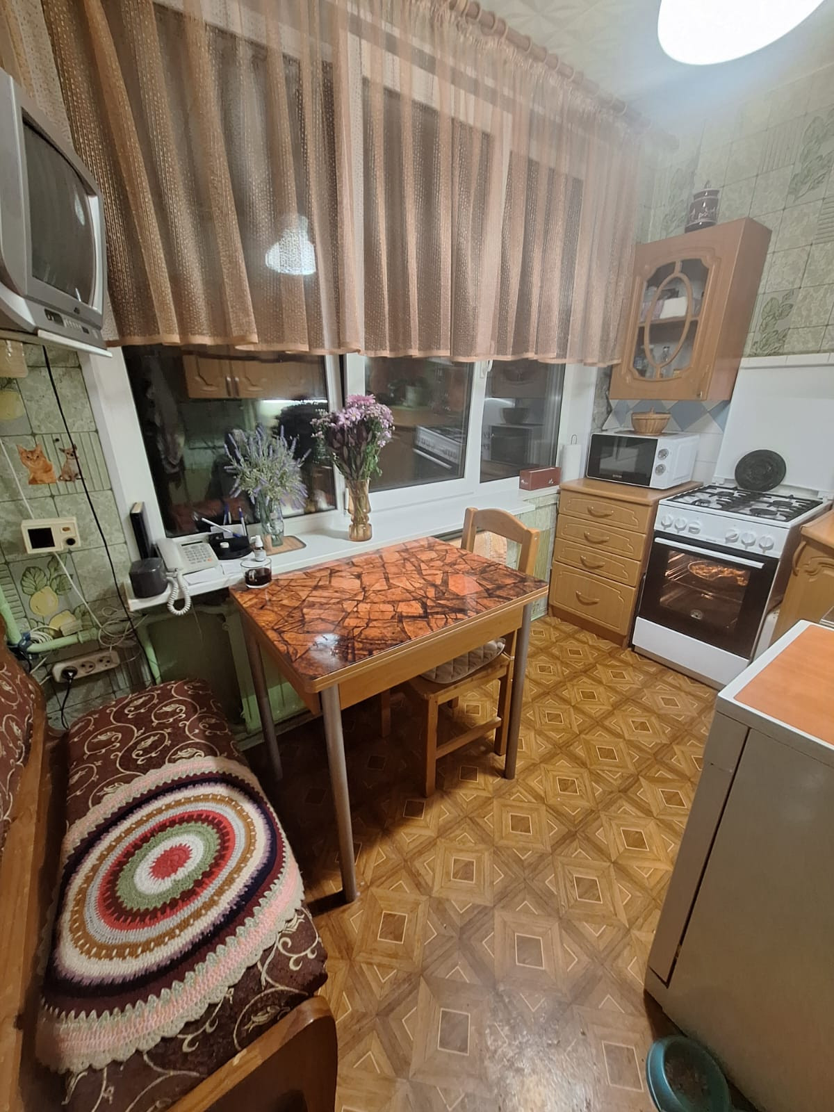 Окна выходят в тихий зеленый двор, юг-восток и юг. Установлены стеклопакеты. Произведена замена труб и унитаза в 2024 году. Пол паркет и линолеум.