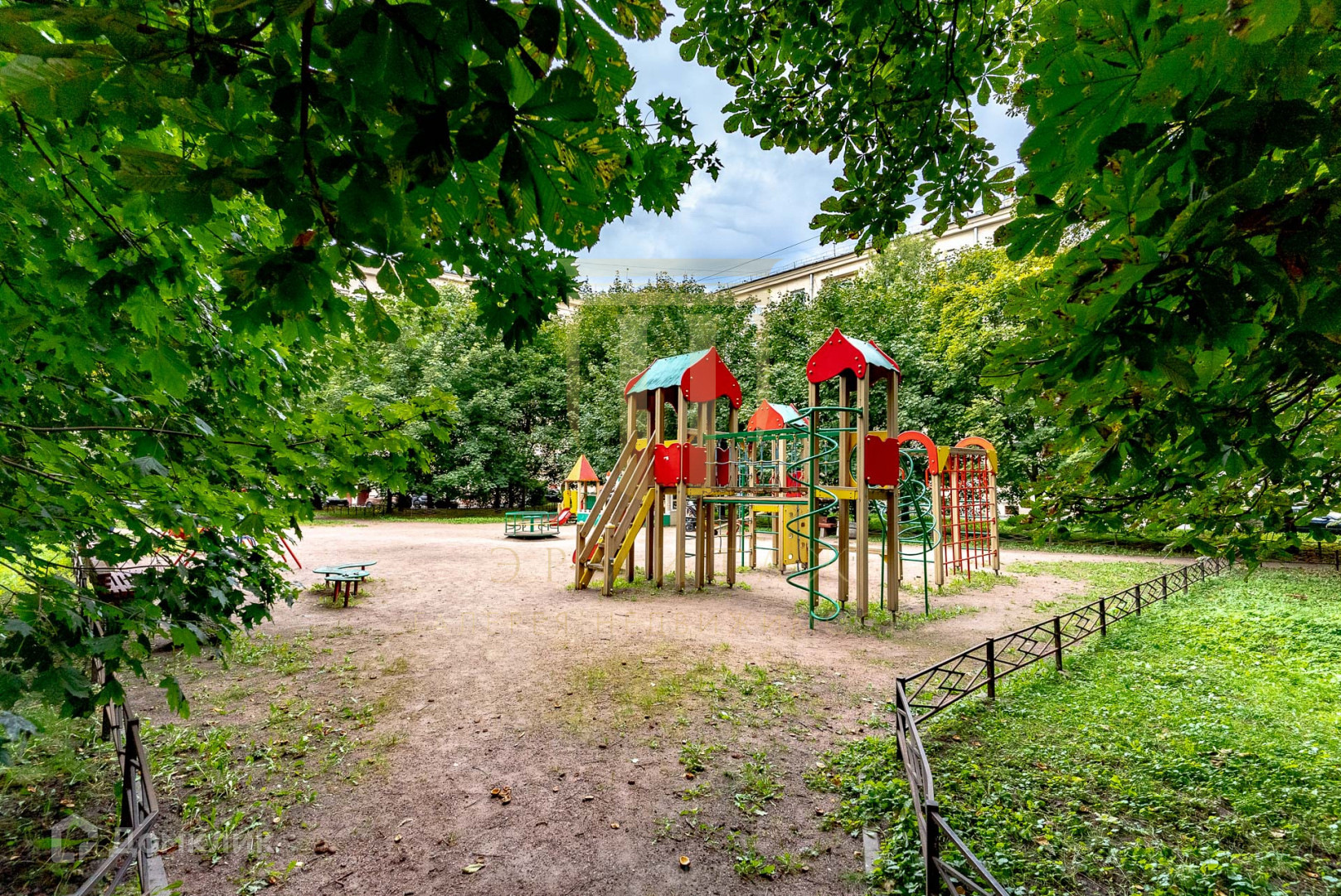 Лестничная клетка аккуратная, светлая, ухоженная со шторами и цветами на всех этажах. Соседи очень трепетно относятся в порядку в своём доме. У дома большая детская площадка окруженная деревьями, двор просторный и чистый. В районе преобладает малоэтажная застройка.