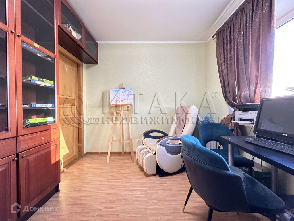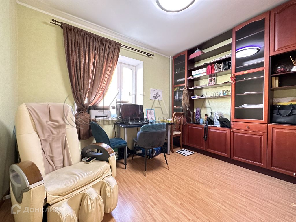 - комната-библиотека 26,2 кв.м: широкий диван, система хранения, массажное кресло