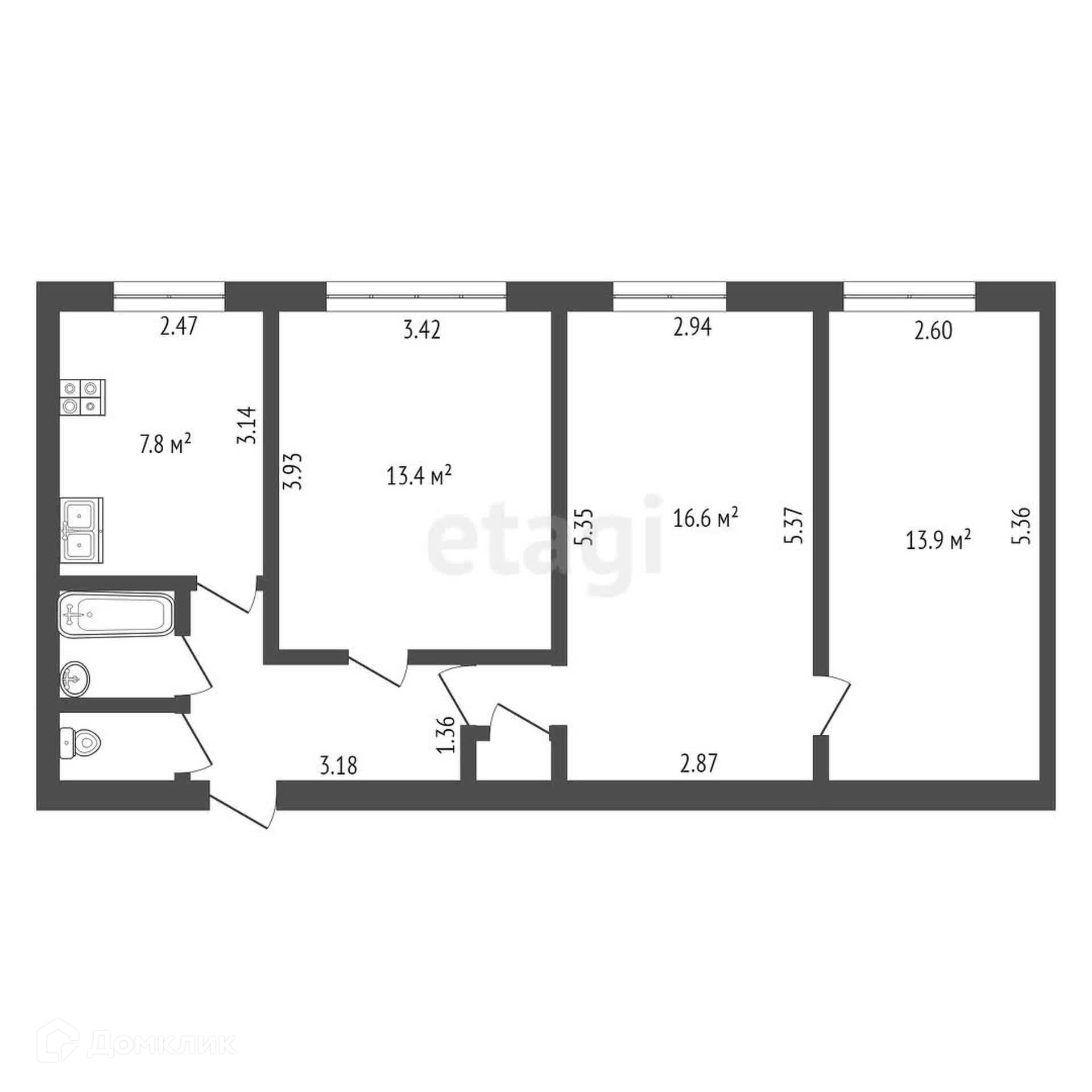 - ПРОСТОРНЫЕ комнаты площадью 14м², 17м² и 13,5м²),