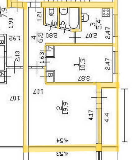 Общая площадь 46.3 м2