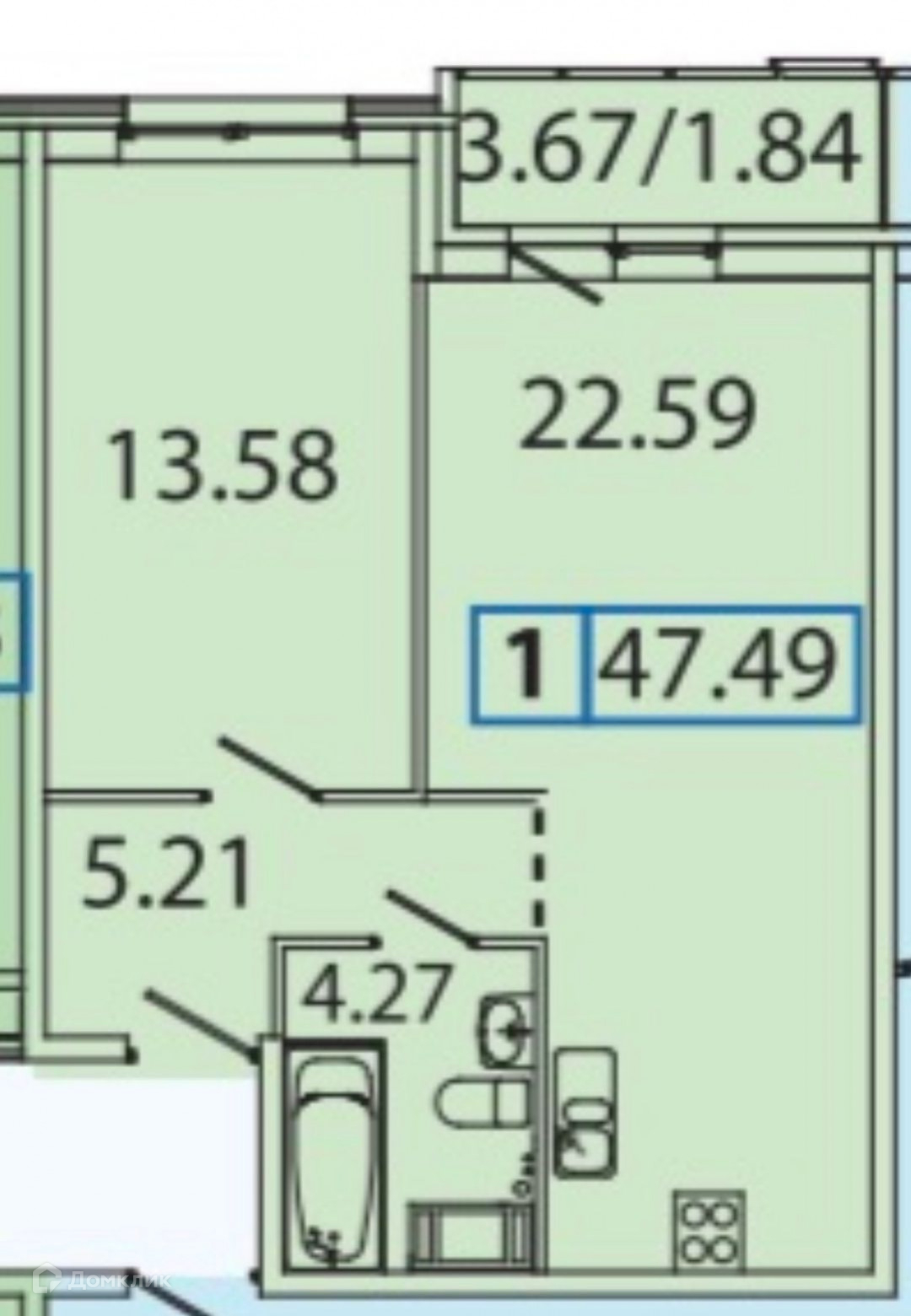 Балкон, лоджия 1 балкон