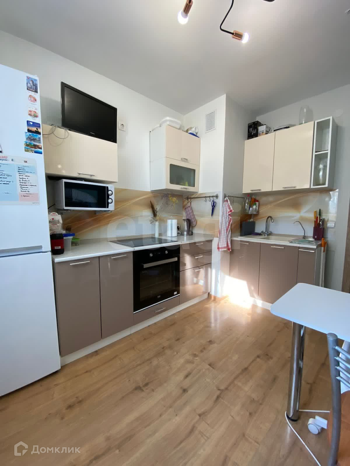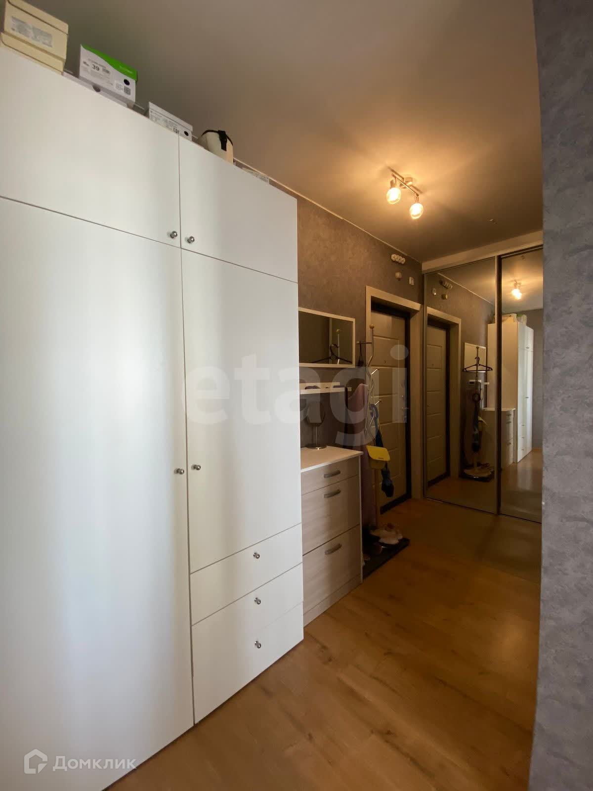 В квартире остается все для жизни: кухня со встроенной техникой, стиральная машина, вместительный шкаф-купе в прихожей, угловой шкаф и диван в комнате.