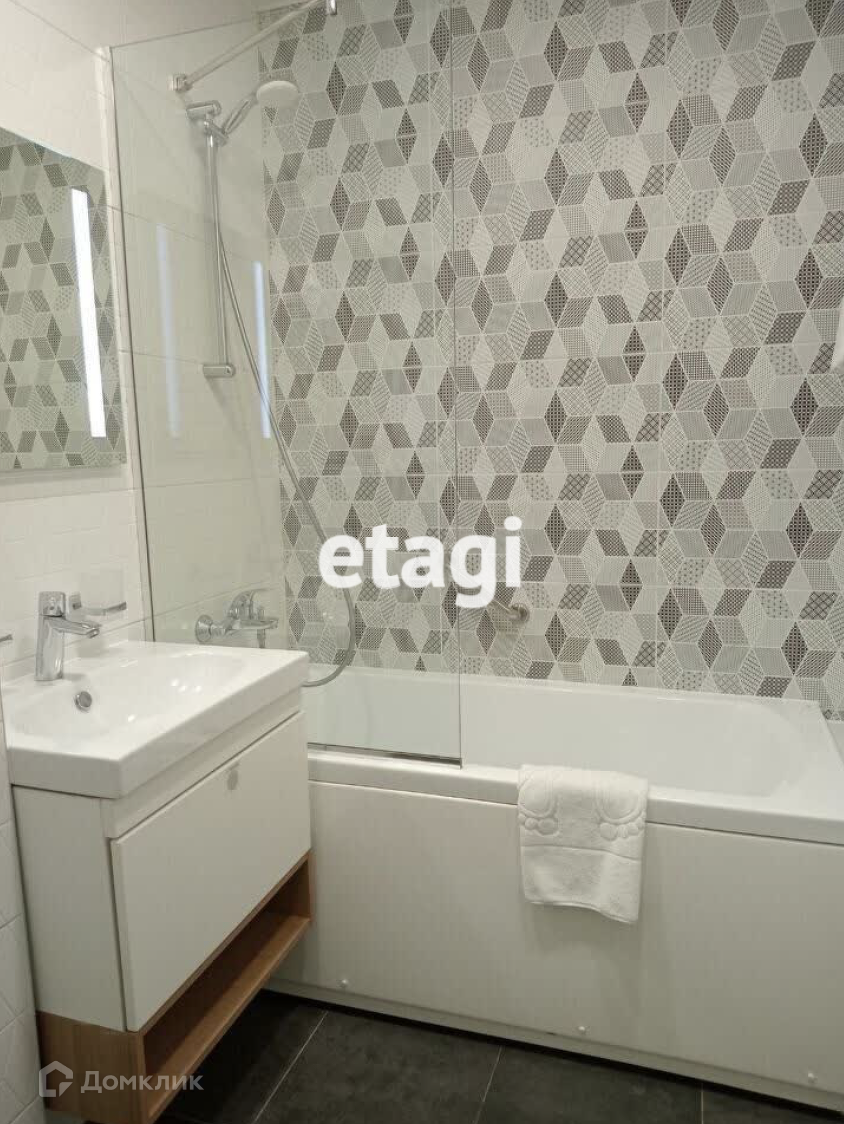 Апартамент с полной чистовой отделкой: установлена сантехника, уложен ламинат, стены оклеены обоями, в санузлах уложена мозаика и плитка, а также включена вся необходимая мебель, техника и бытовая утварь.
