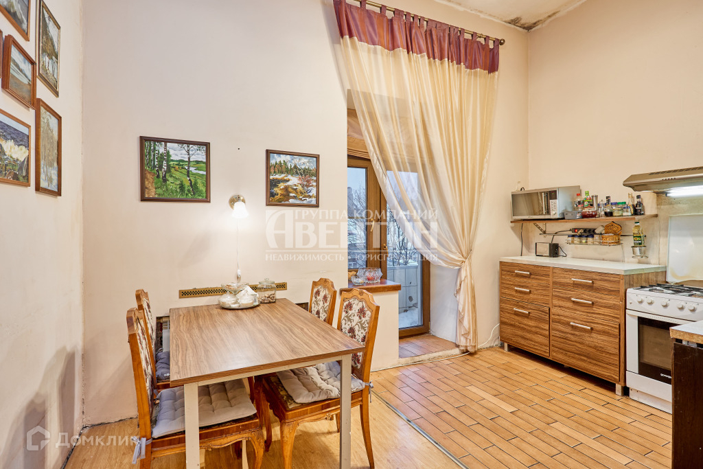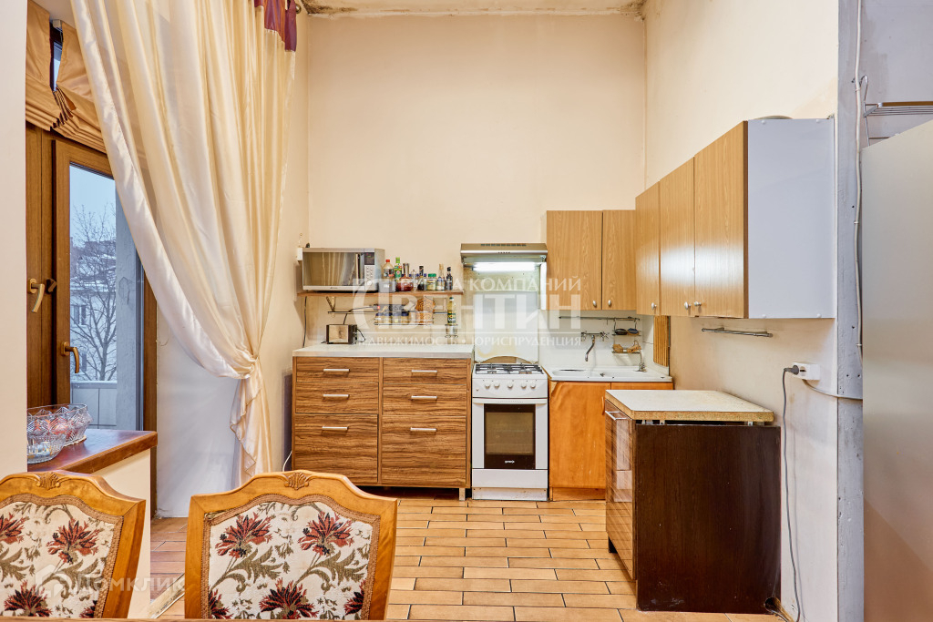 Кухня с балконом, вид в зеленый двор с кленами. Высота помещений 3.64 м. Большая антресоль около 4.5 кв.м. Особенности конструкций позволяют сделать перепланировку при необходимости.