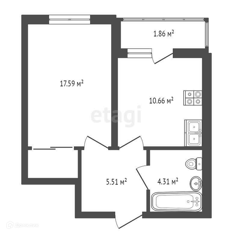 Общая площадь 37.6 м2