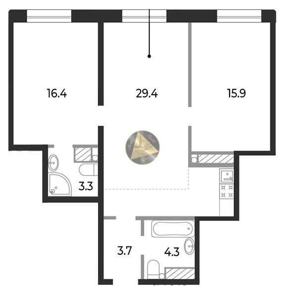 - Санузлы 4,3 + 3,3 м2