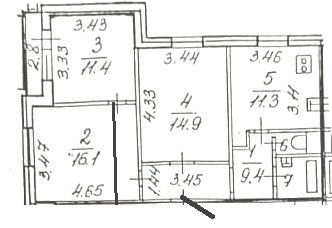Прекрасный вариант для проживания семьи с детьми - три изолированные комнаты  14,9+11,4+16,1 м.кв..