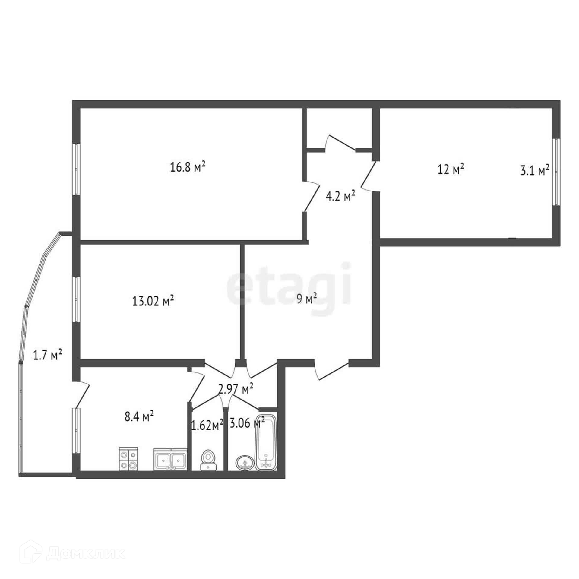 * раздельный санузел с полноценной ванной 170 см;
